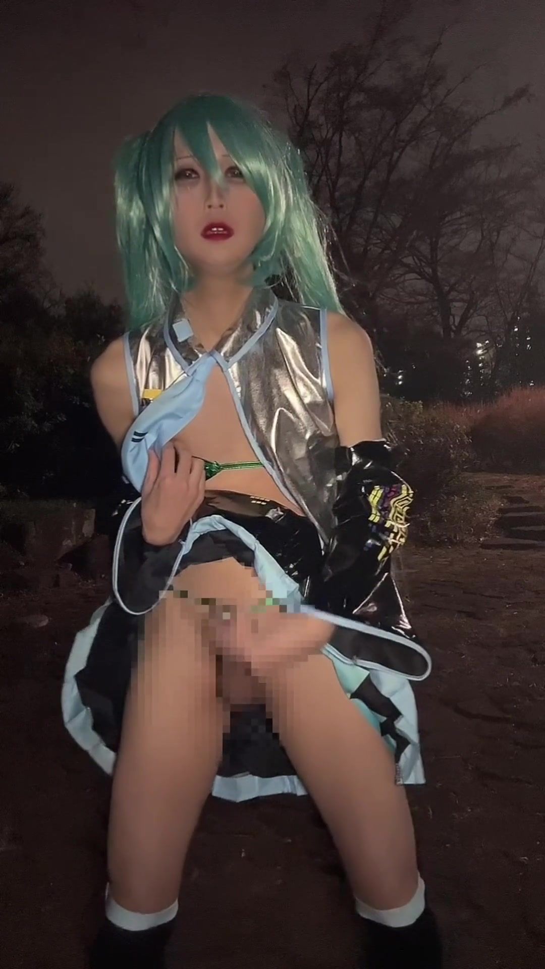 【女装】野外でコスプレオナニー【VOCALOID 初音ミクthree】