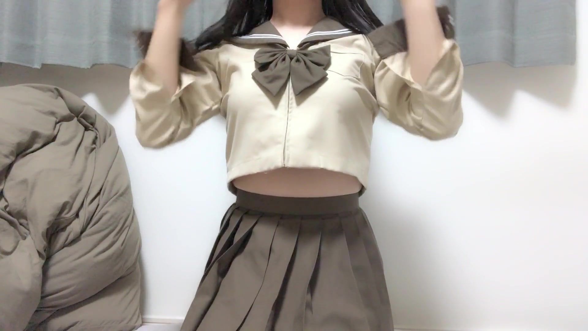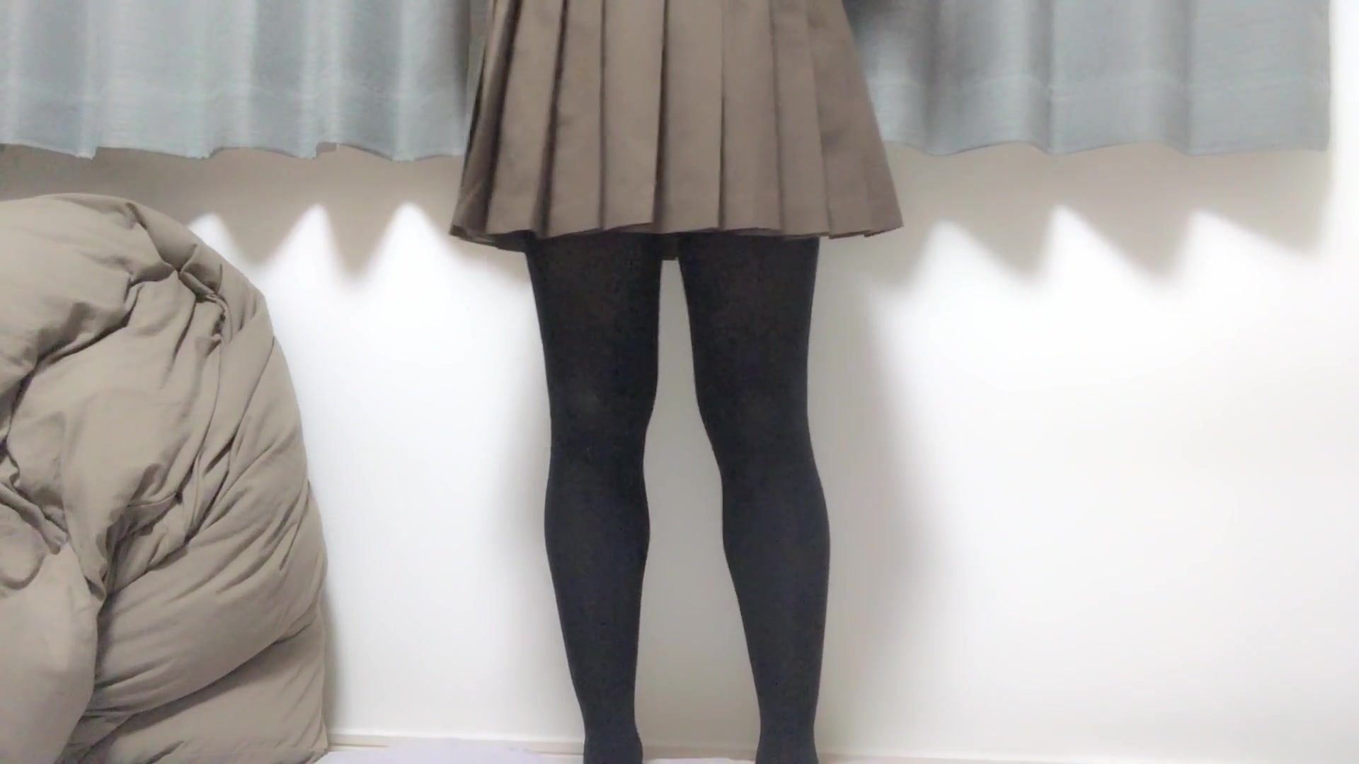男の娘 - 人通りのある夜のベランダで隠れて制服オナニー Crossdresser