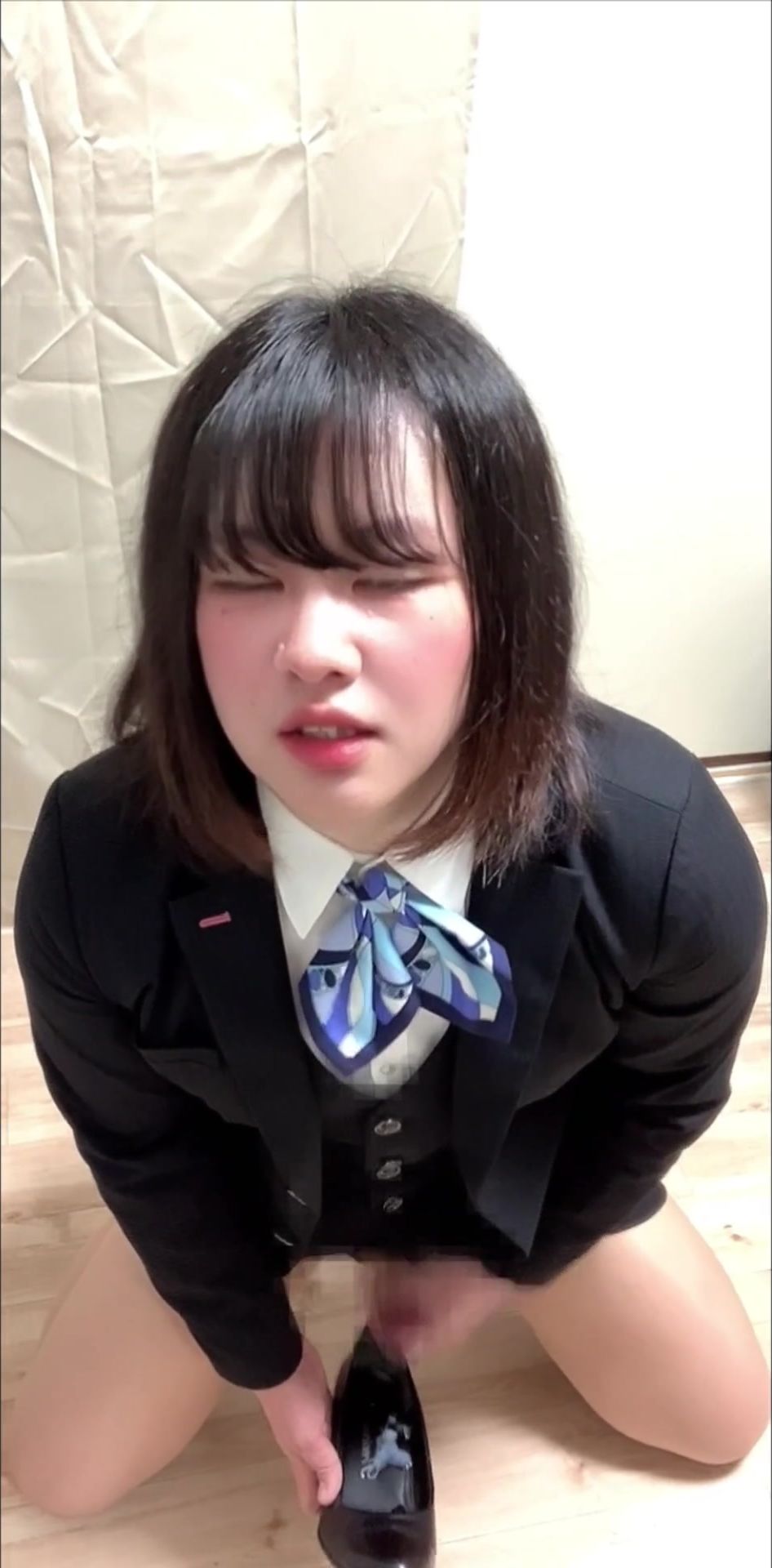 男の娘が本物のOL制服着てしこしこオナニー、本革パンプスの中に射精