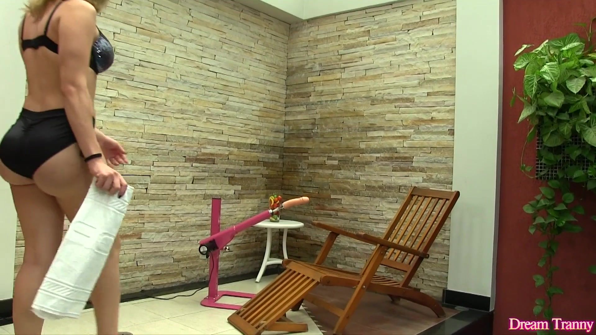 TRANSSEXUAL Beauty Luana Costa Takes a Machine Mounted Fake Penis up Her Meaty Ass