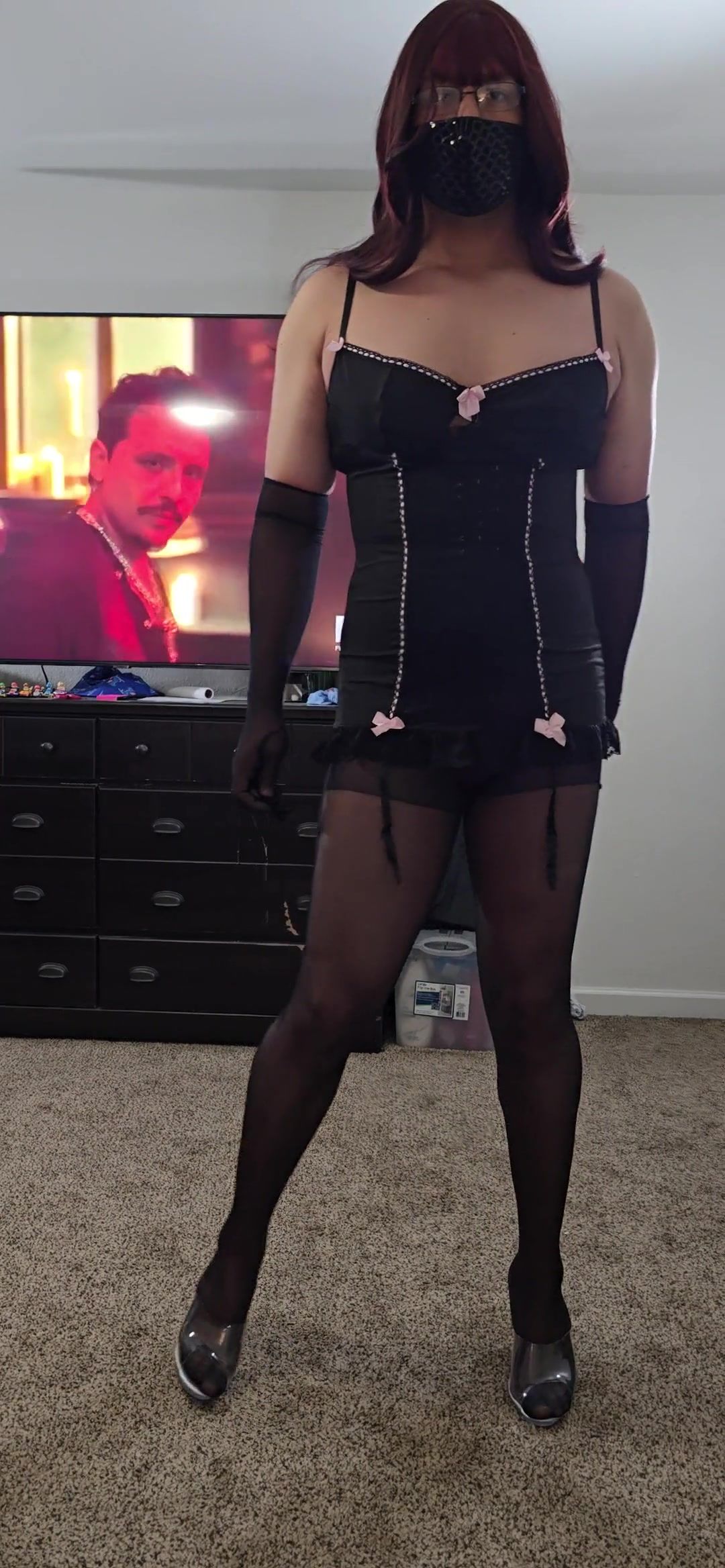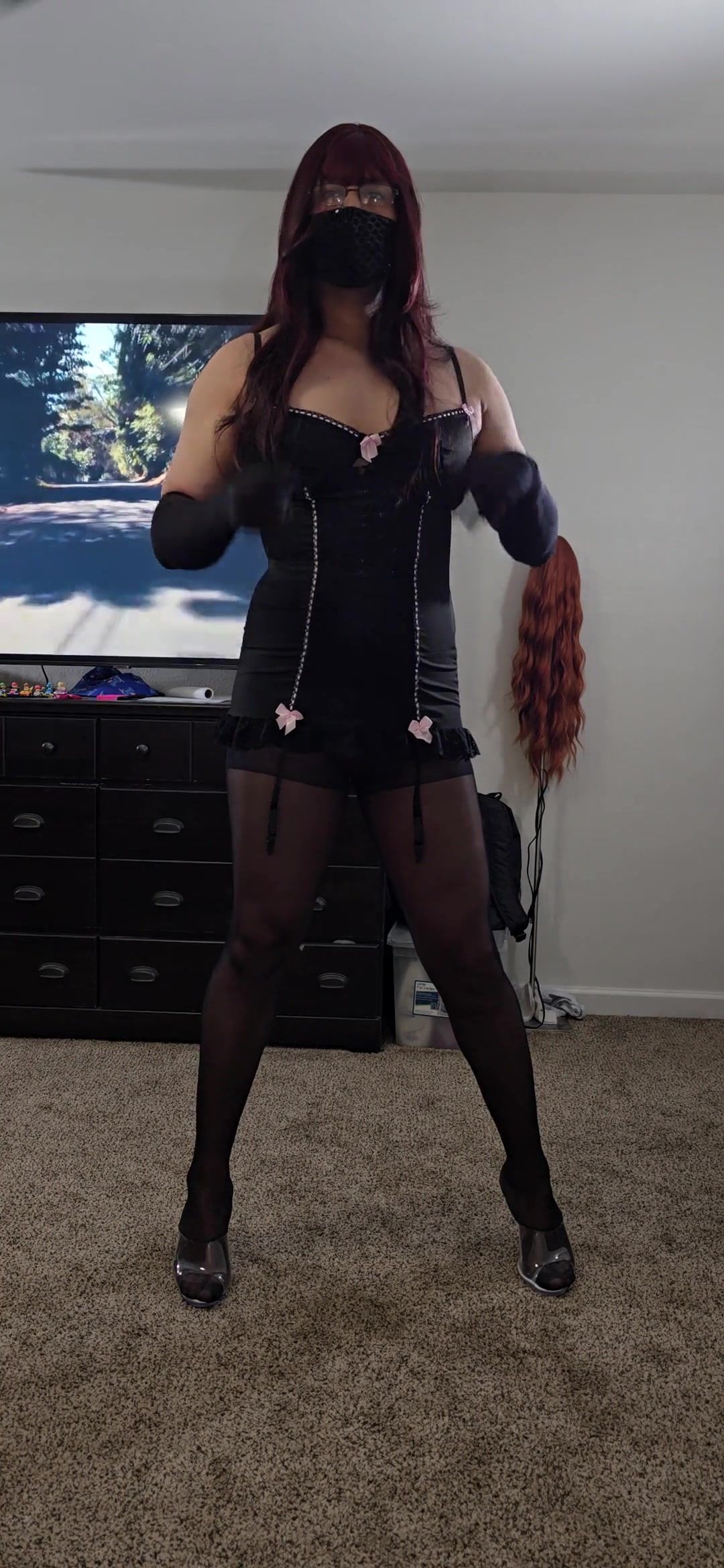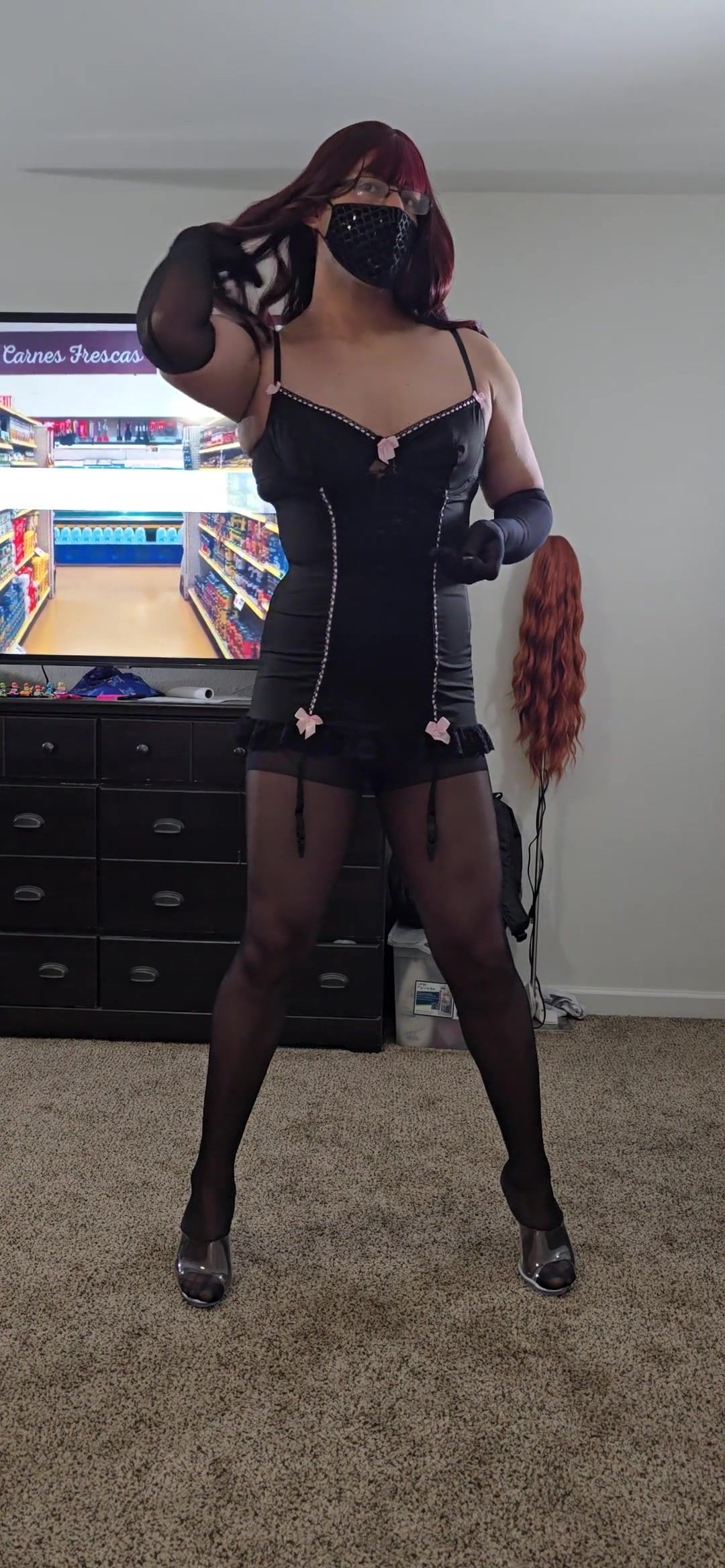 Nicki-Crossdress in stunning Underwear, Tights & Shoes taunting