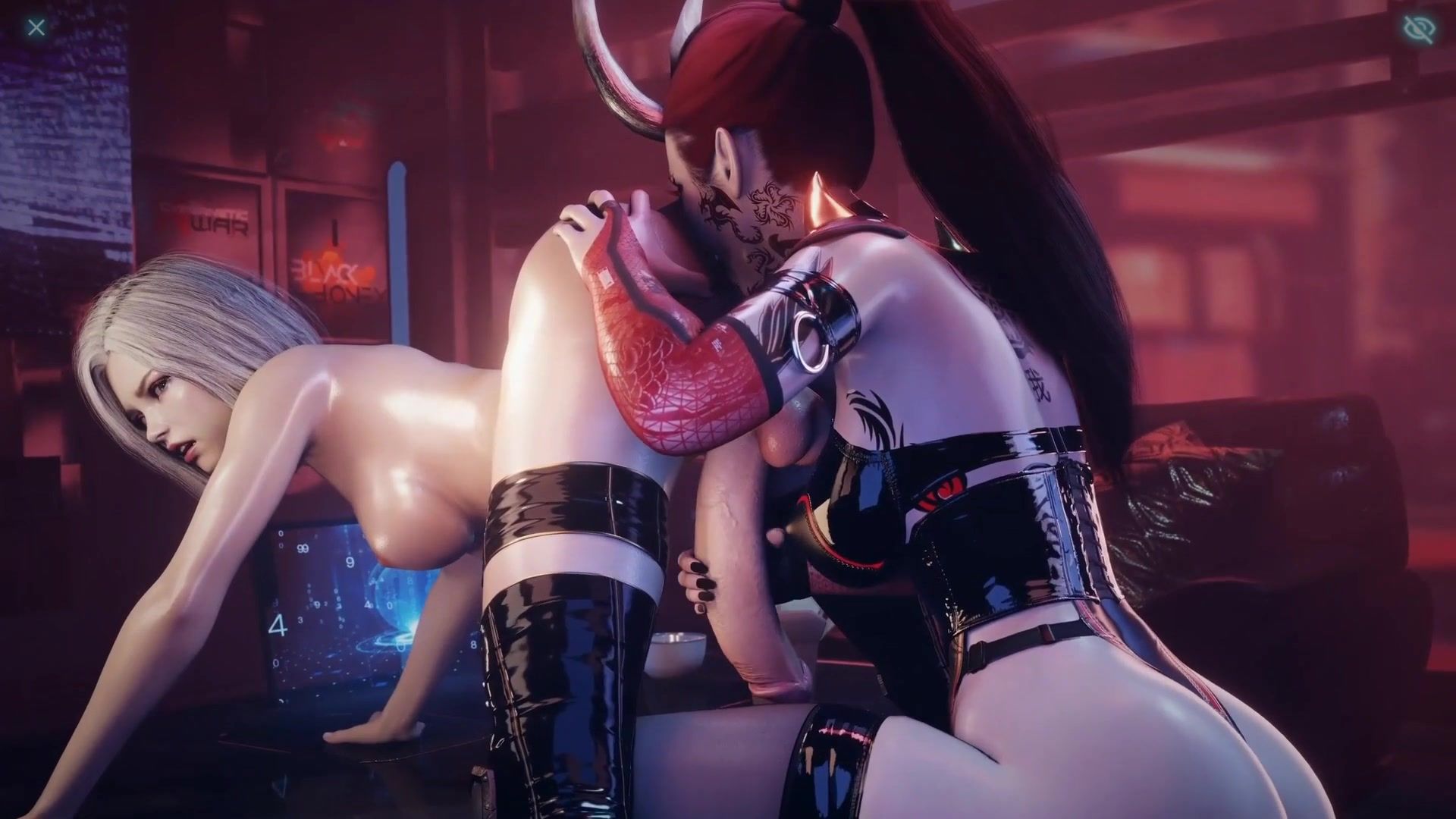 Tattooed donk tgirl with split tongue deepthroats sausage