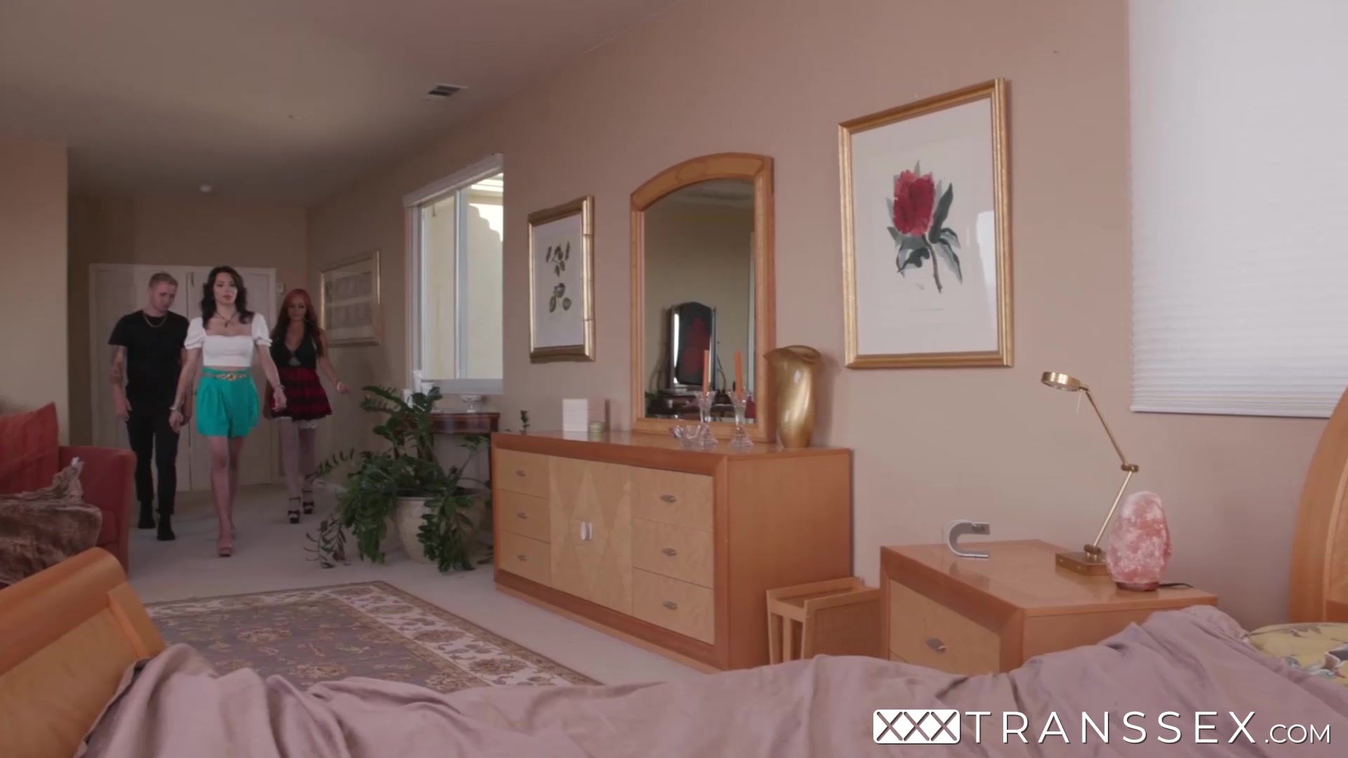Kinky hottie makes out with two inked trans babes before being railed balls deep in kinky threesome.