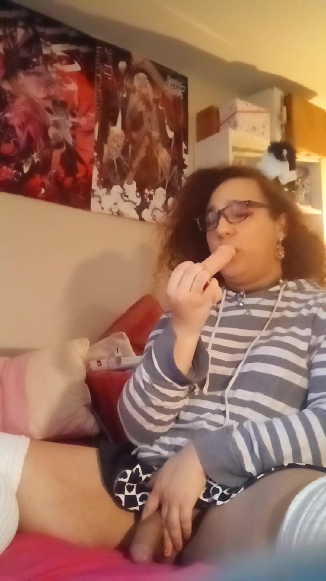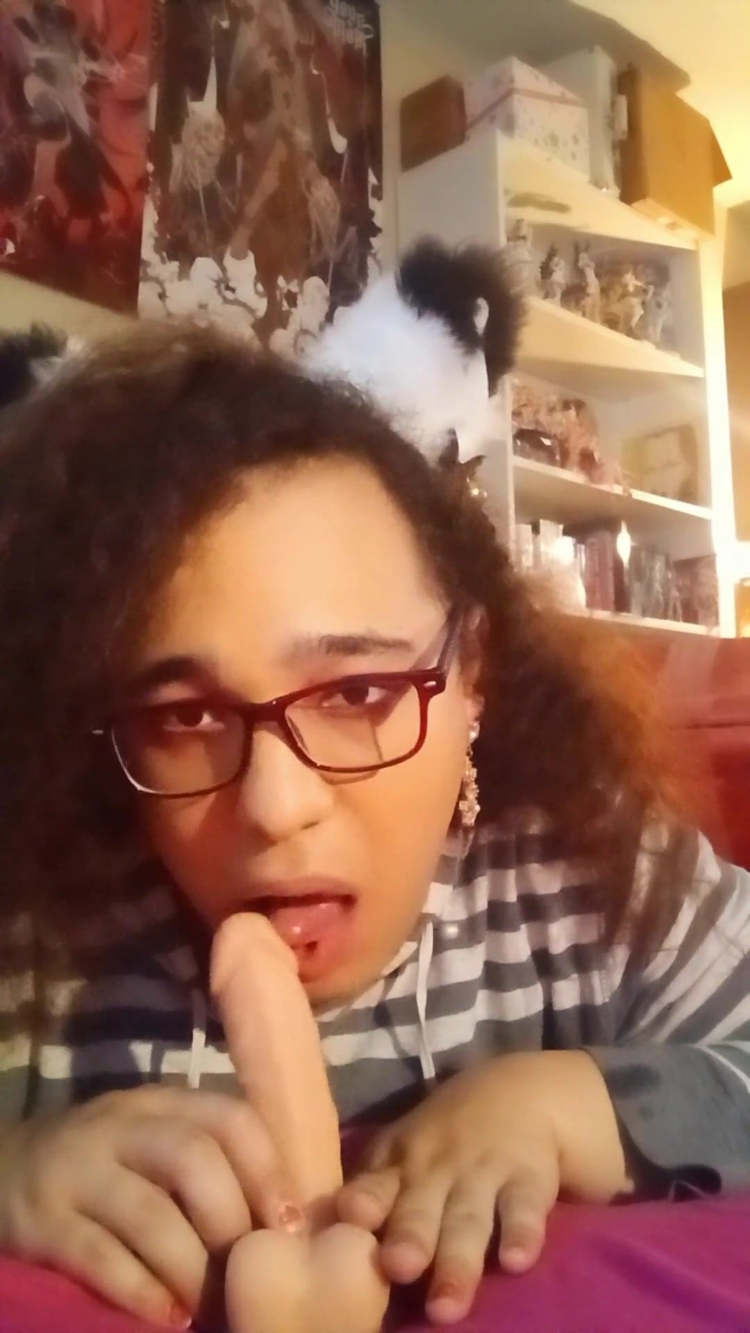 Trans foxgirl experiences fellating and shrieks while taking thick fake penis