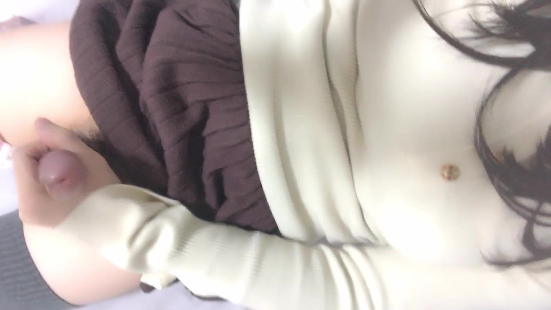 【男の娘】萌え袖セーターとミニスカートでM字開脚オナニー