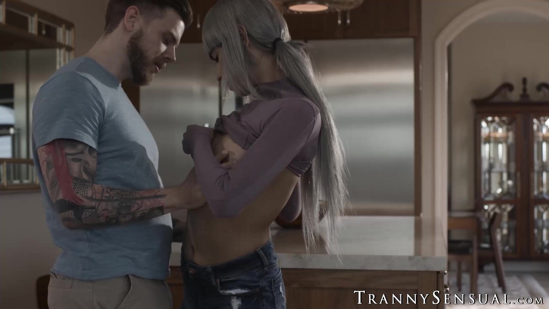 Young man Steve Ricks engages in intimate relations with transgender individual Itzel Saenz while culminating in a moment of climax.