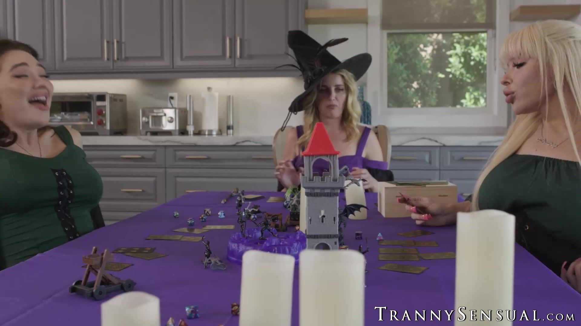 Coco Lovelock who is an energetic young adult enjoys engaging in spit roasting experience with two transgender individuals.