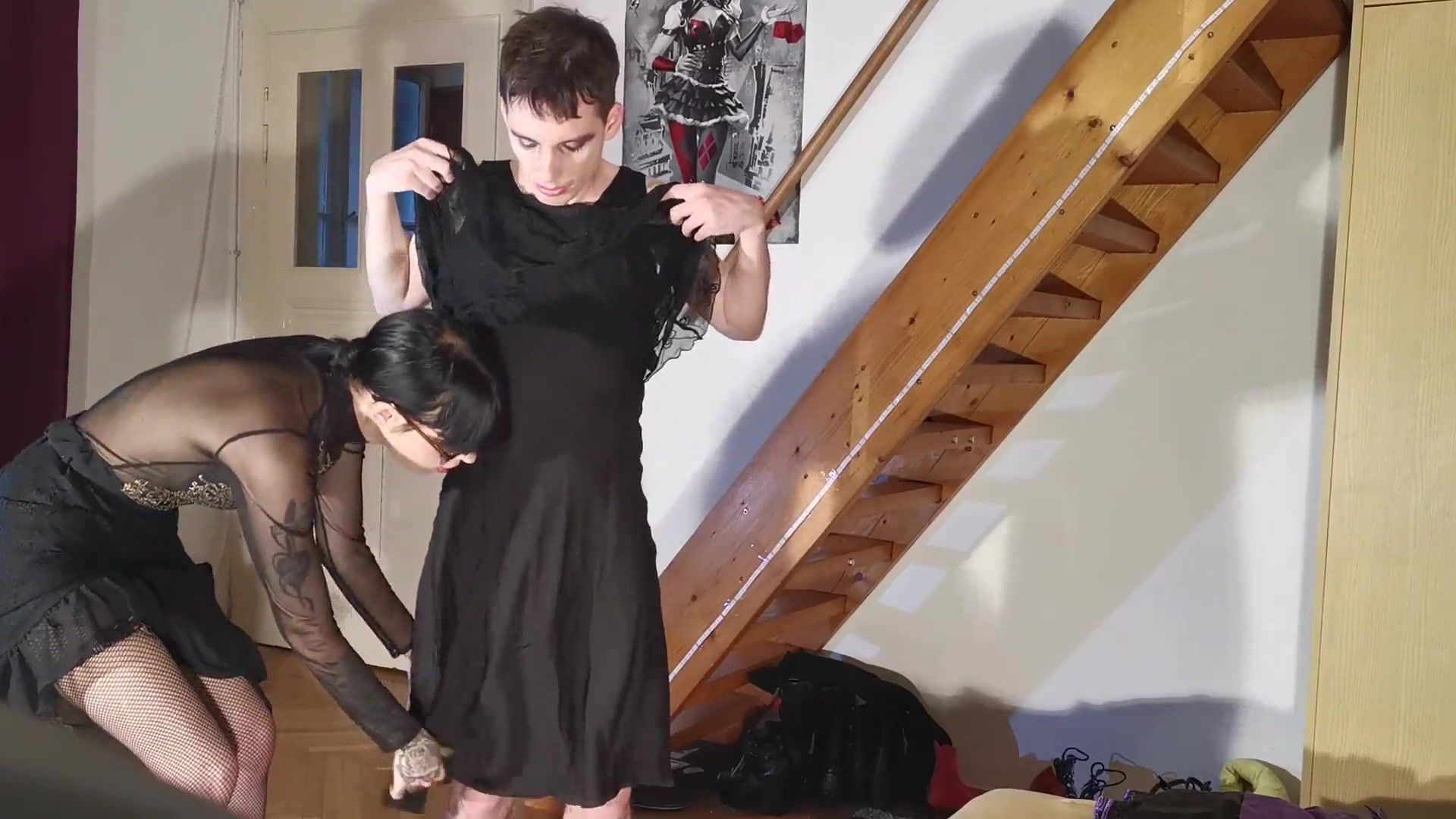 Punk dominatrix Dressing up her fresh crossdresser TV sissy marionette pt1 HD
