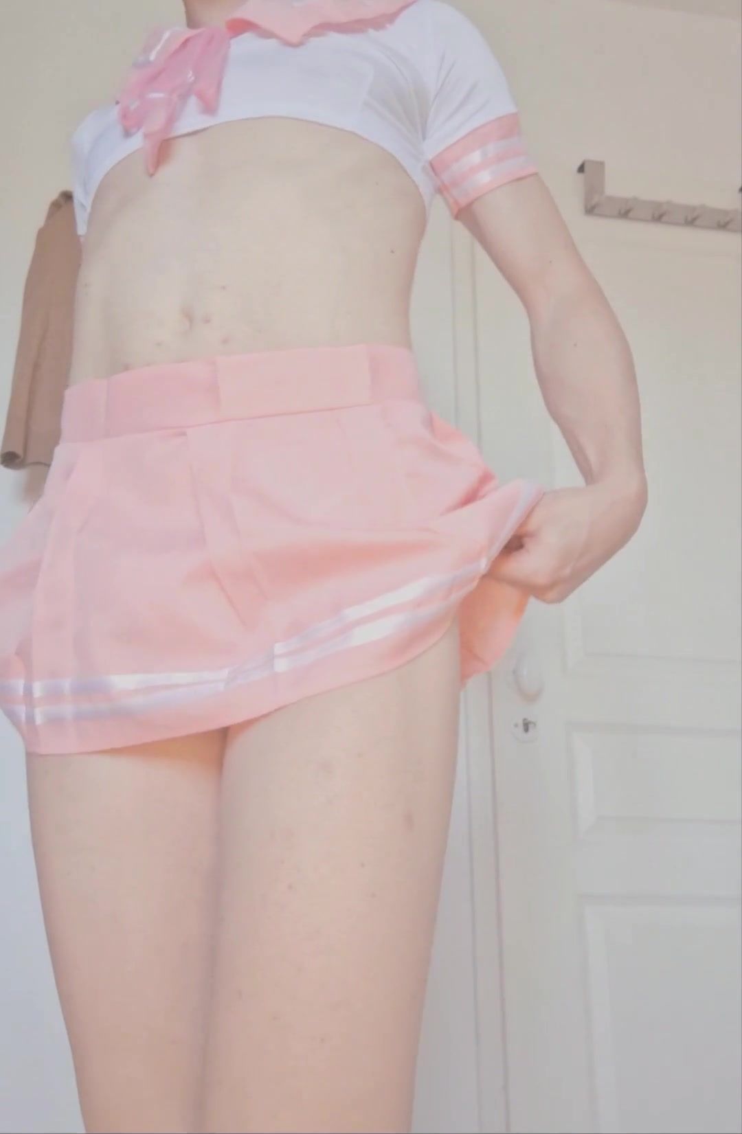 Trampy Femboy in Astolfo costume play liquidate his underpants