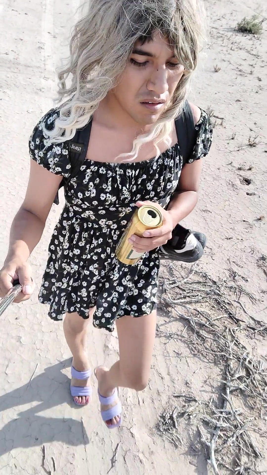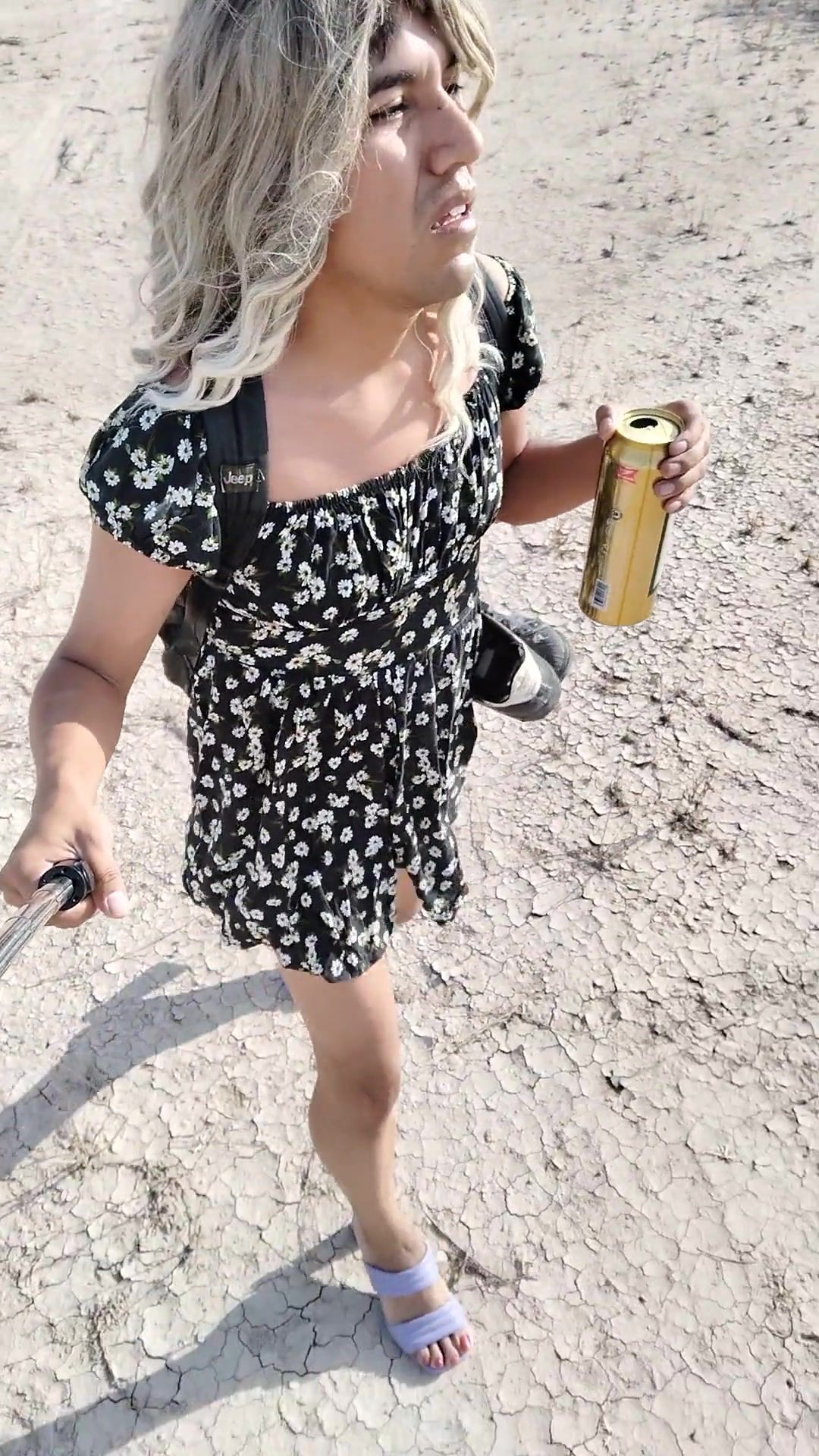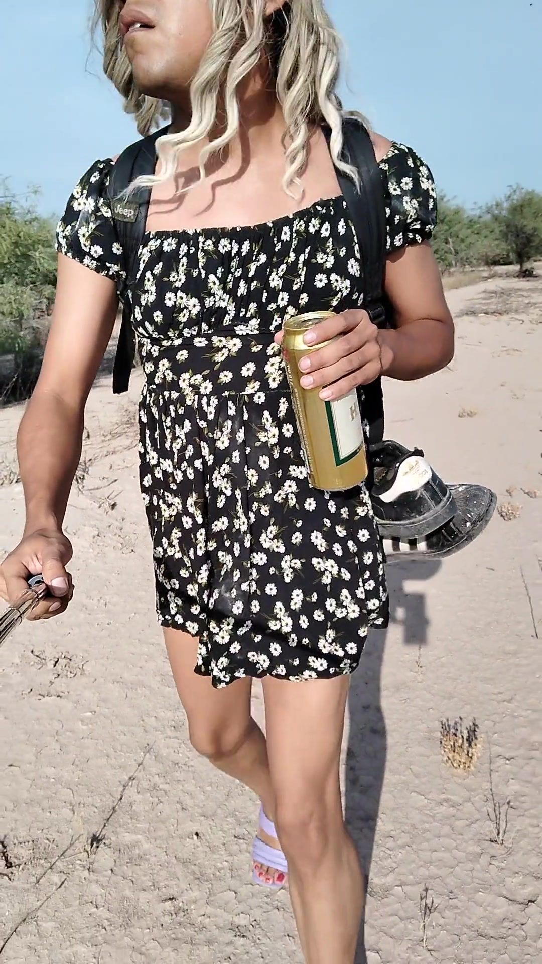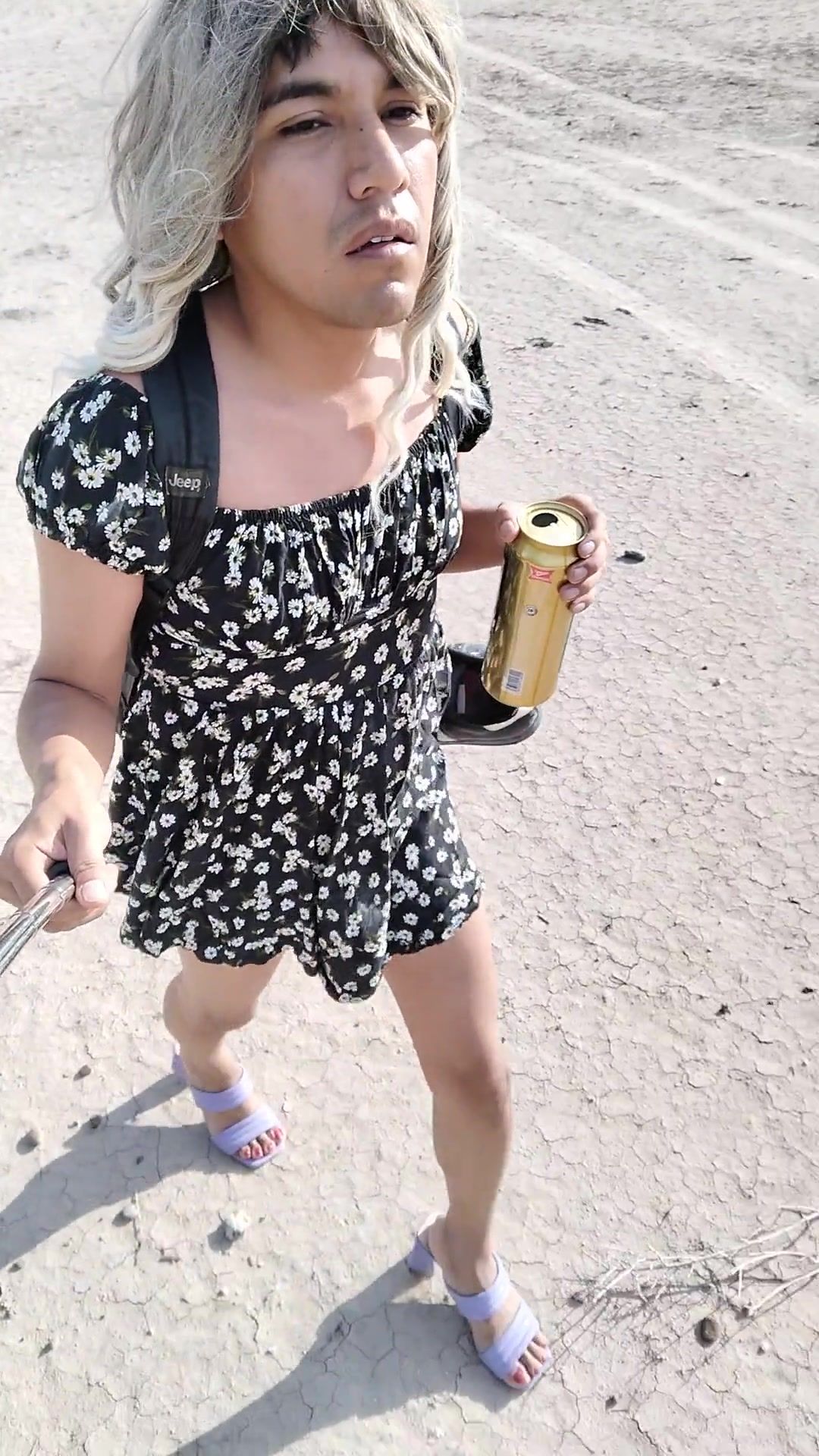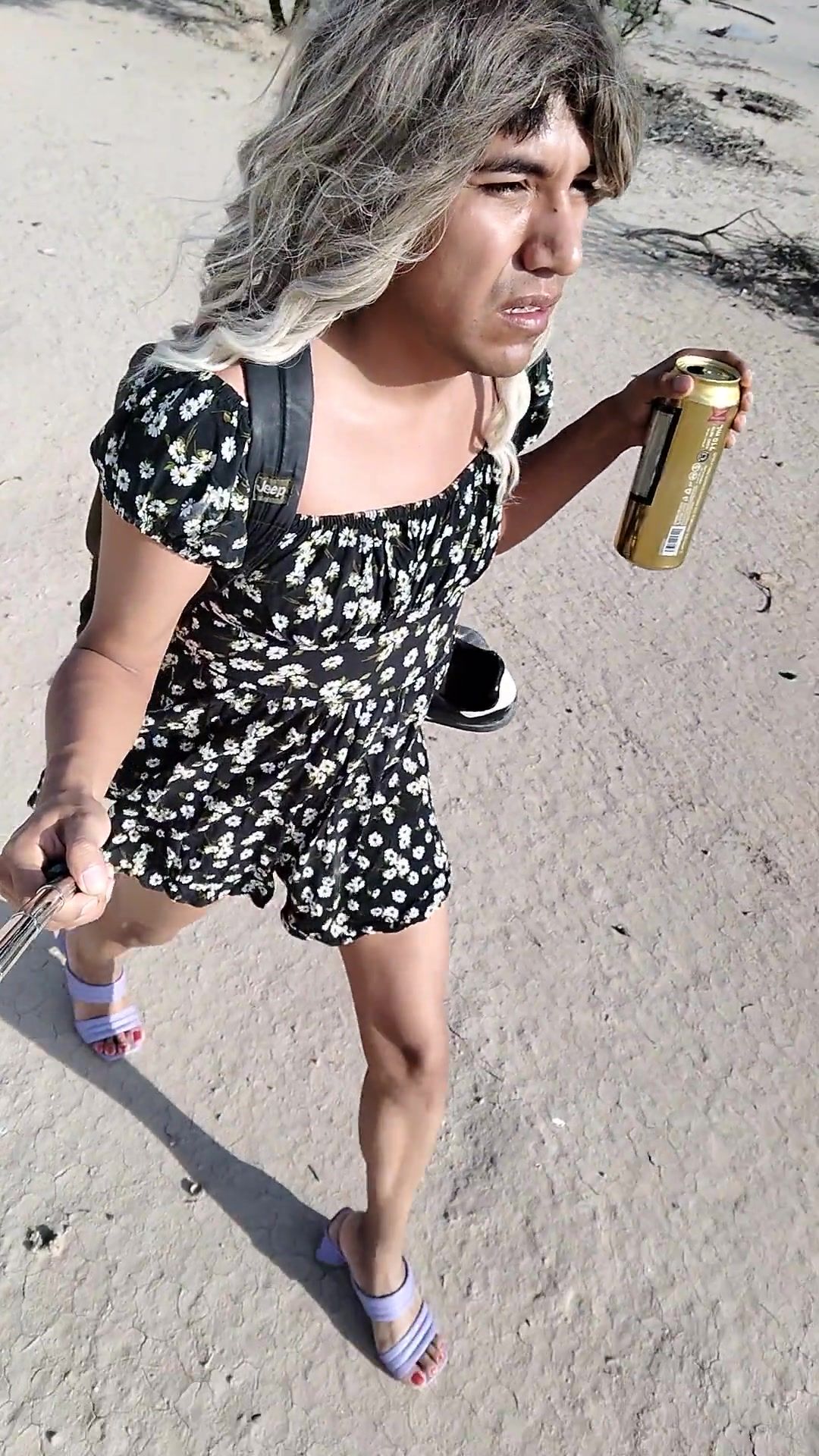 t-girl con lindos pies caliente en mini vestido y tacones camina en publico muy caliente