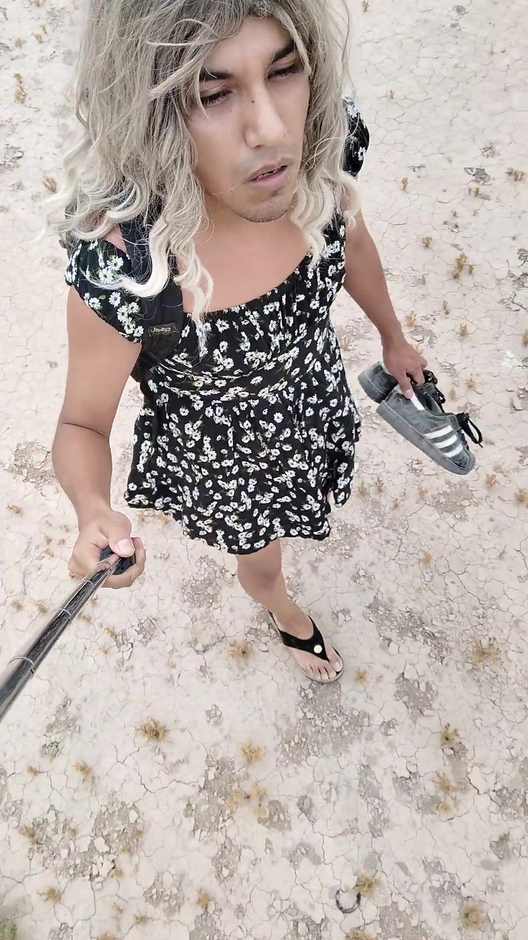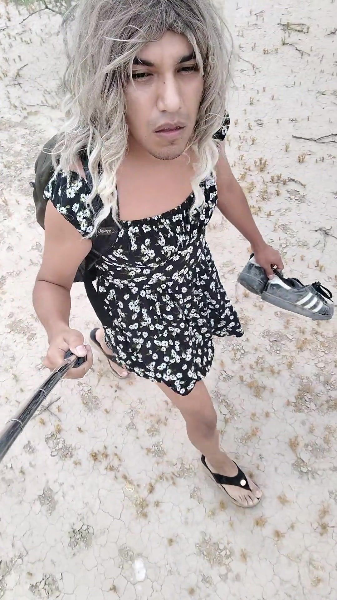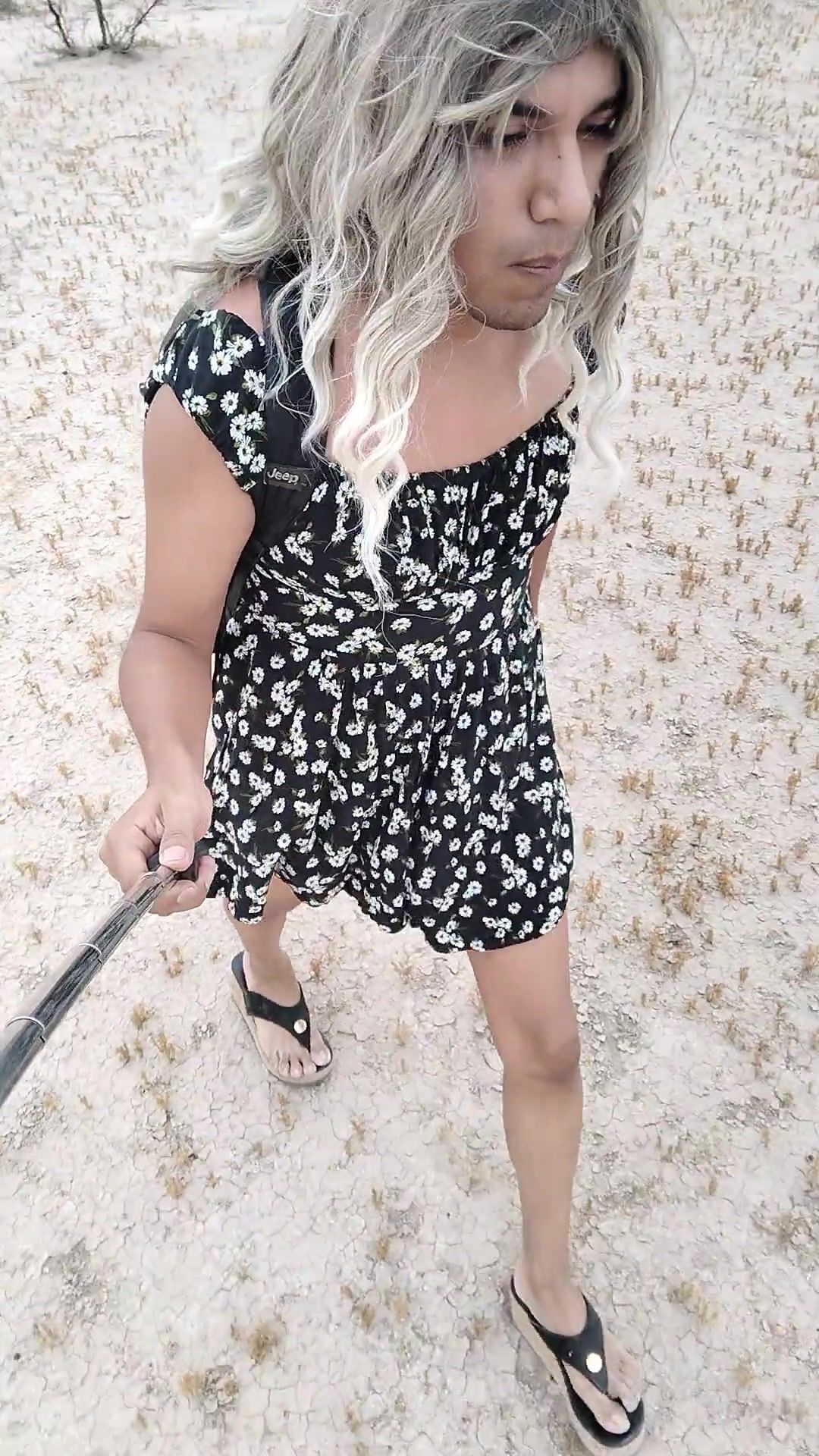 linda shemale en minivestido y sandalias camina en publico muy caliente