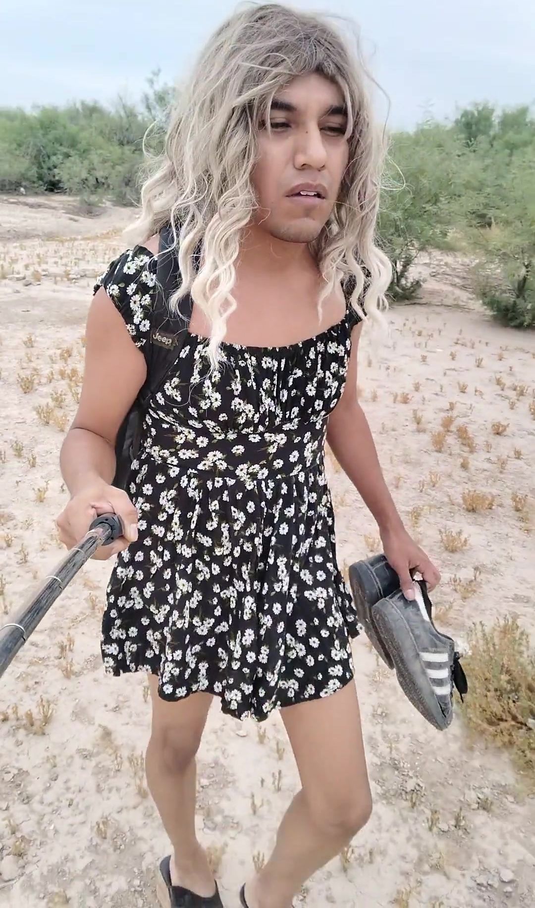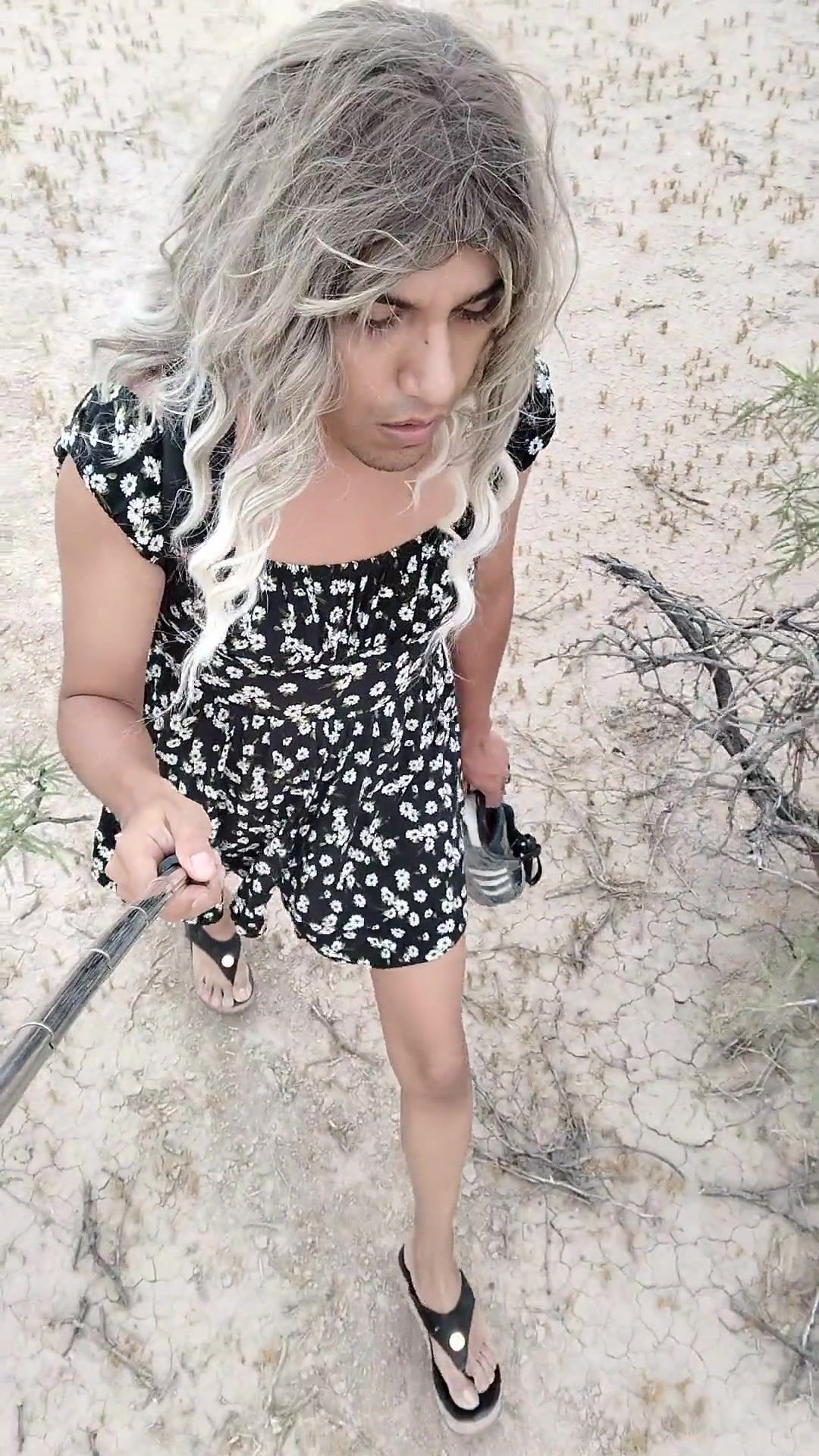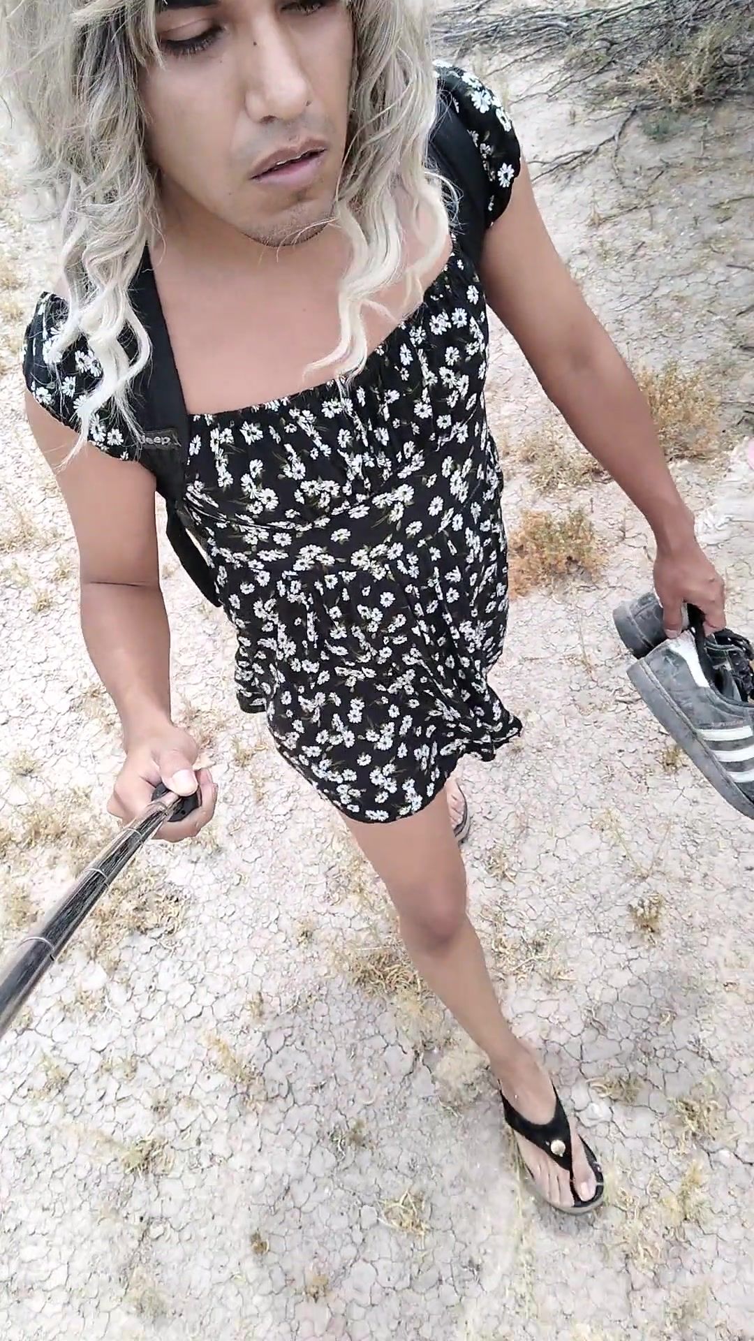 linda shemale en minivestido y sandalias camina en publico muy caliente