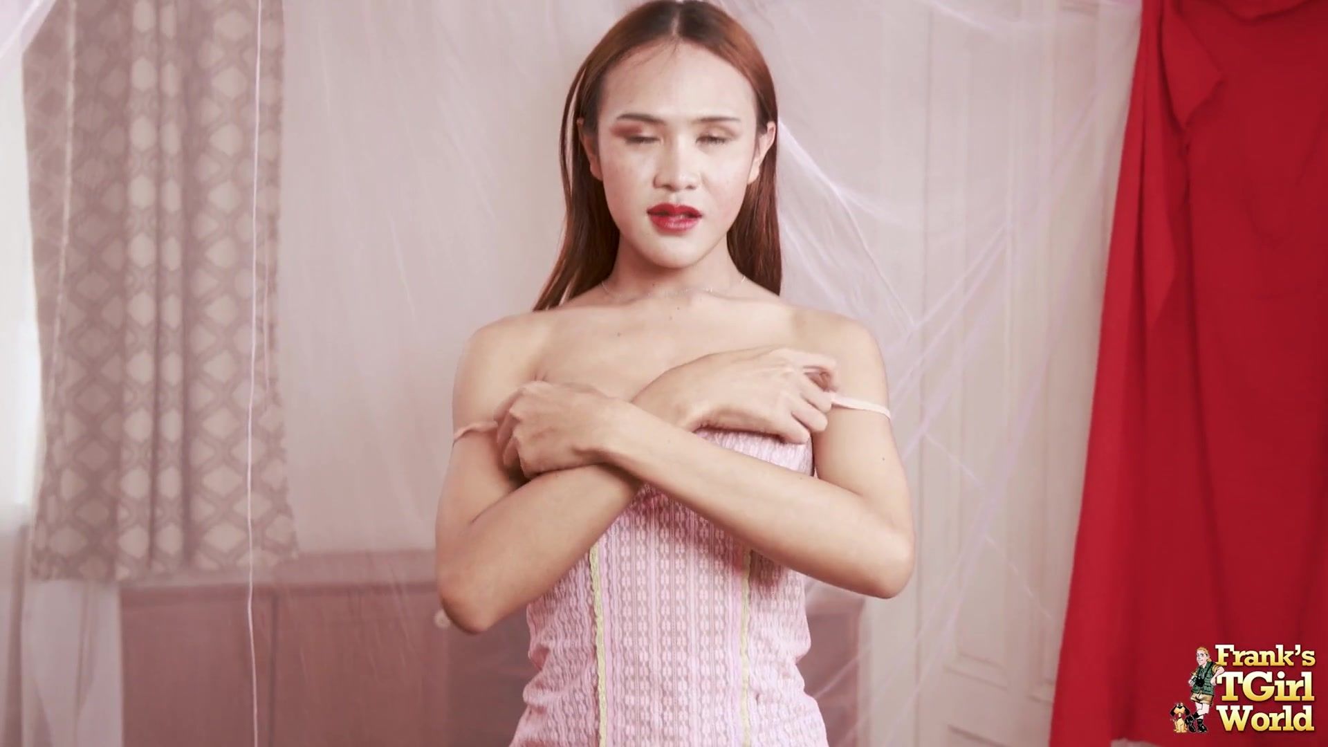 Magnificent Thai tranny with stiff milk cans Jessy in crimson undergarments deep t...