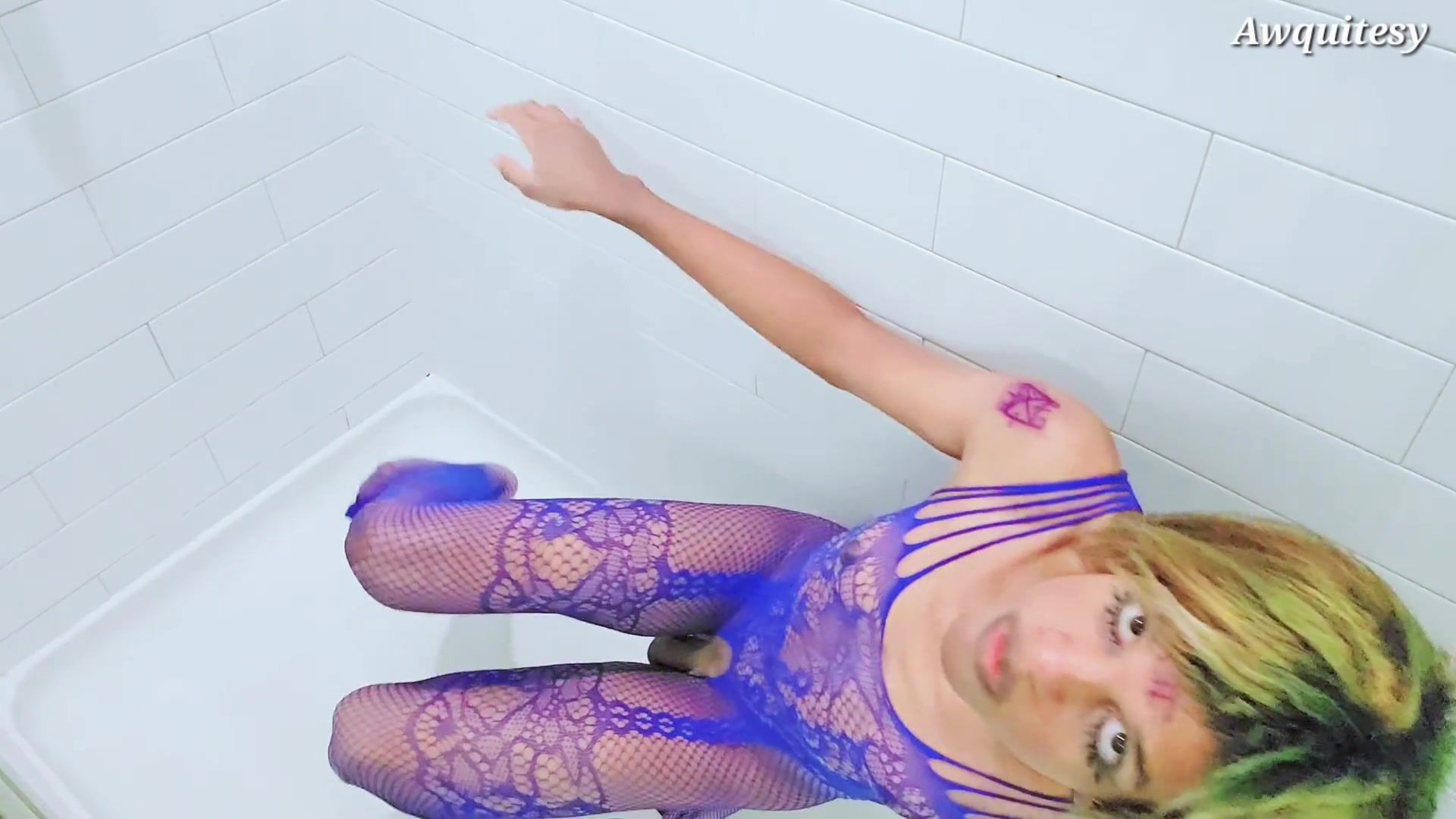 Mind-blowing Trans Damsel Preforms WARM Yoga in Electrical Blue Bodystocking Sissy TRANSSEXUAL Femboy Gymnastics