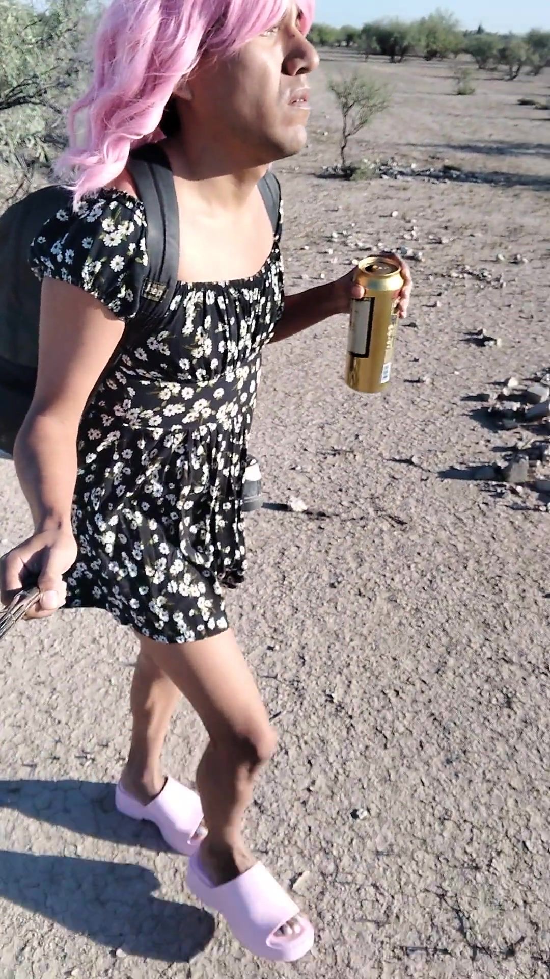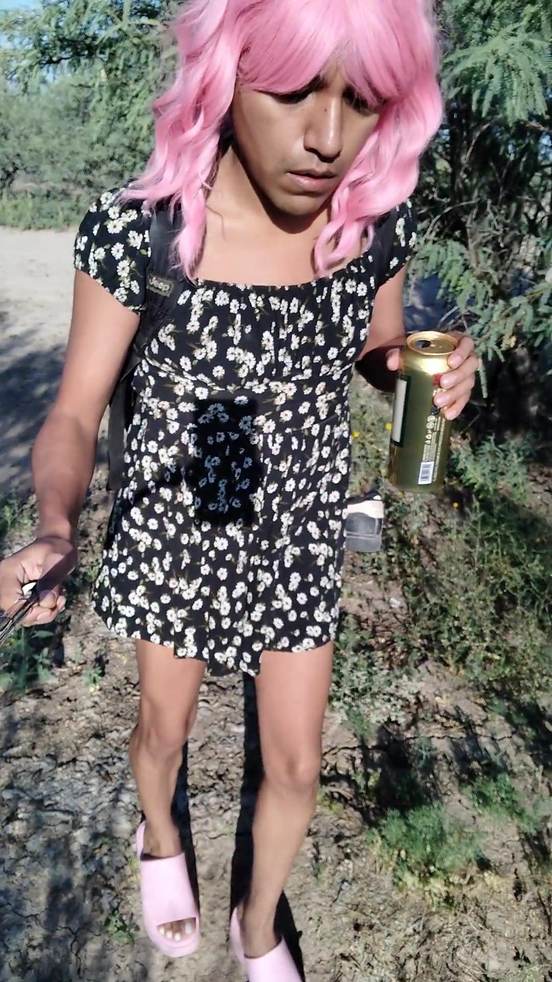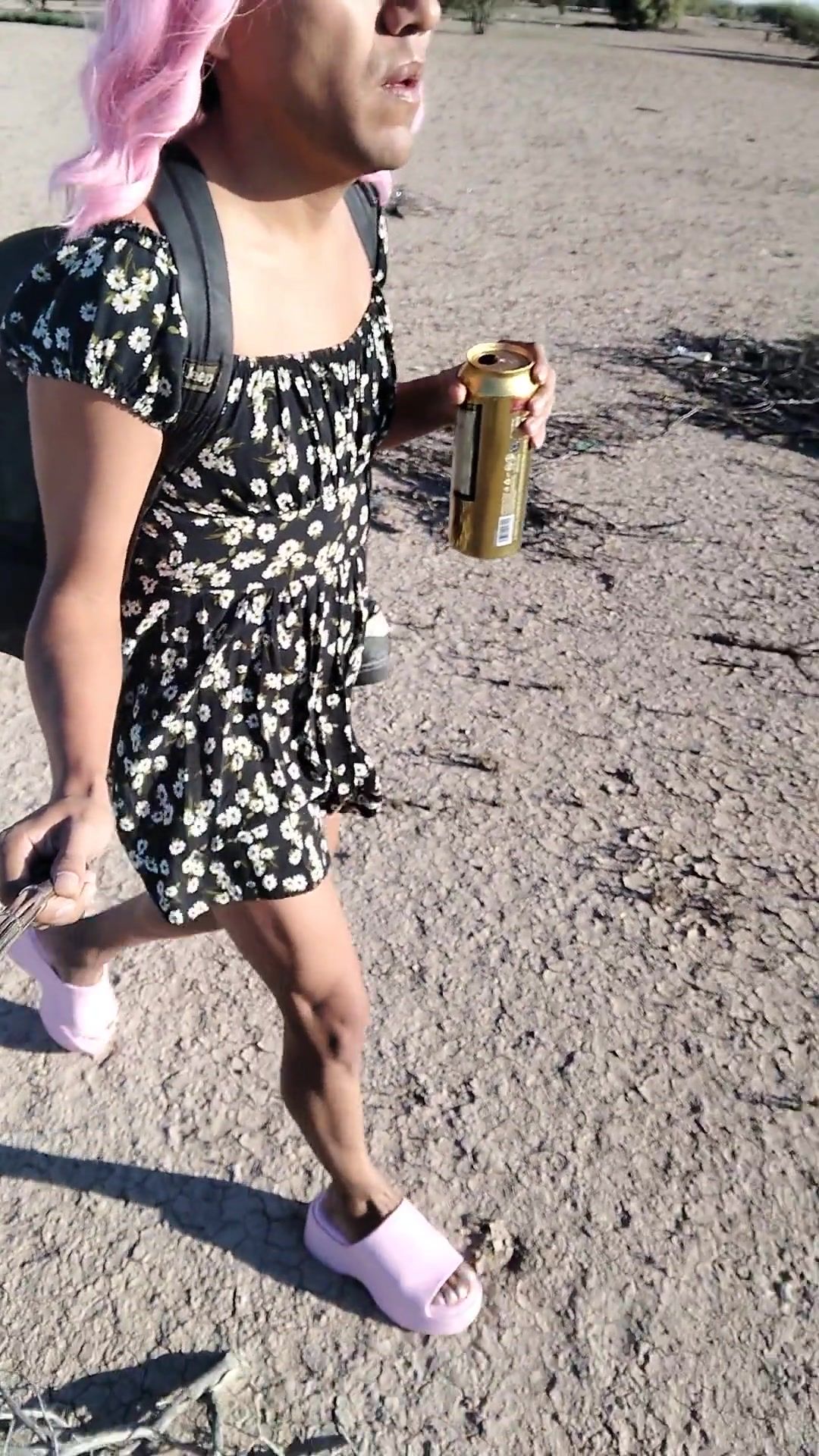 transgender princess hermosa con minivestido camina en publico con sandalias muy caliente