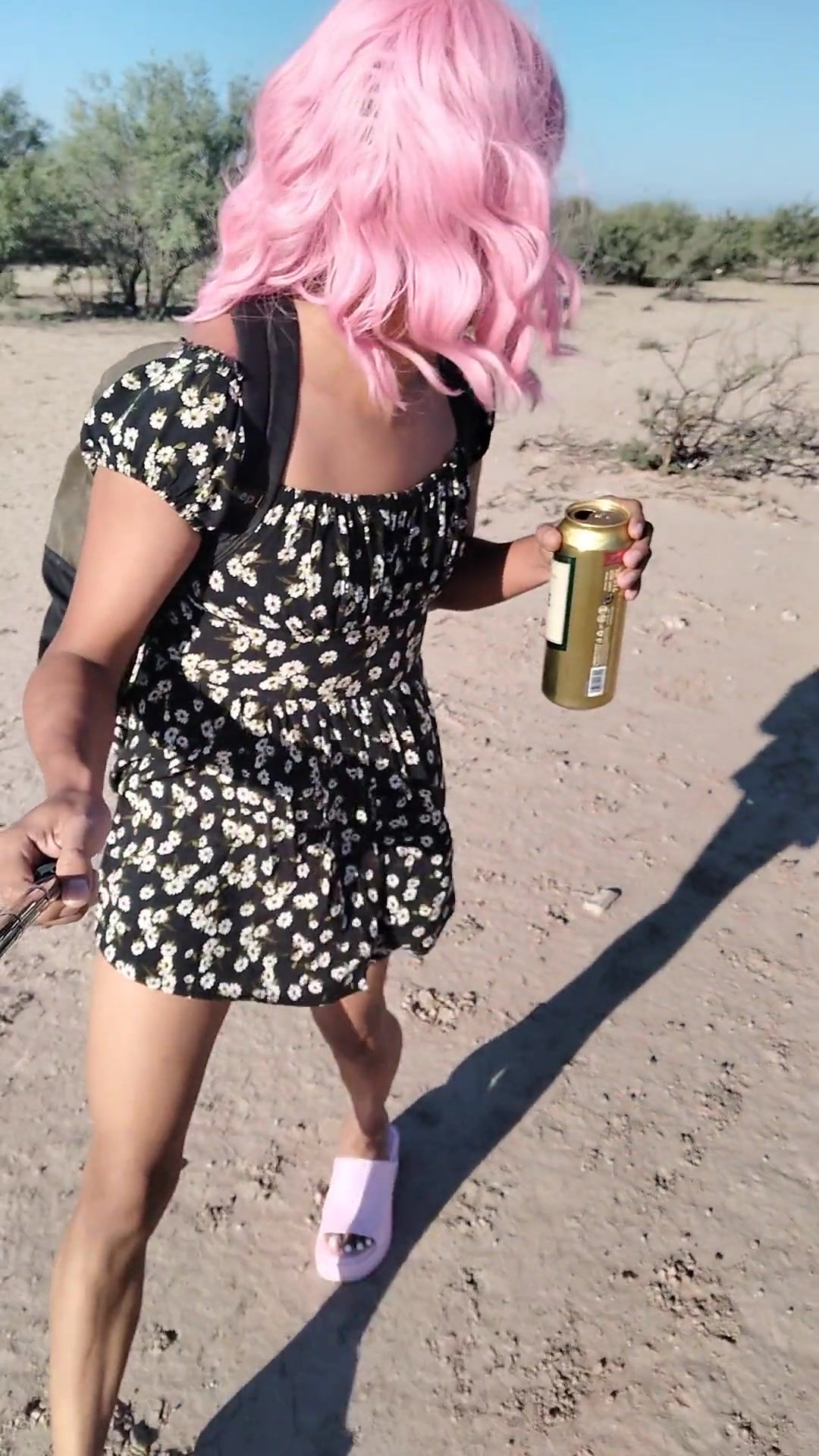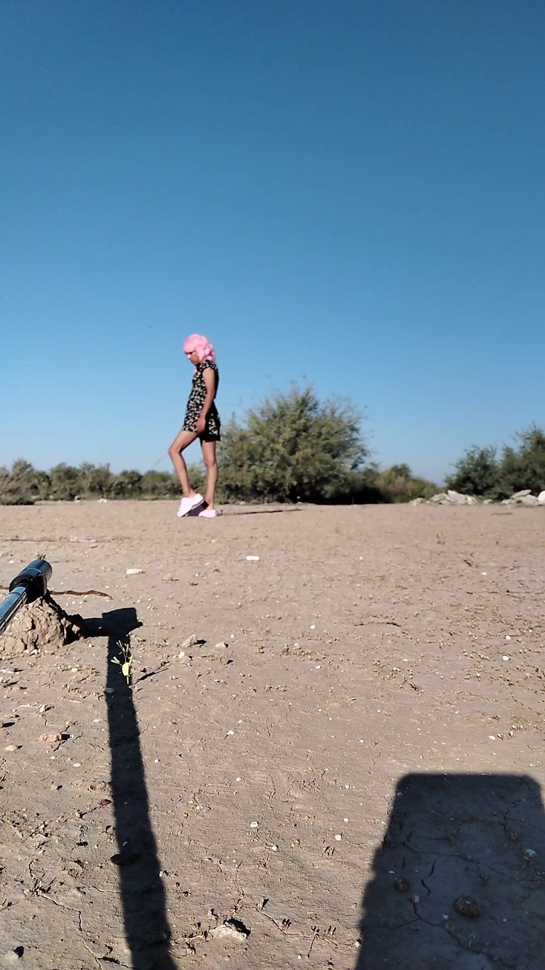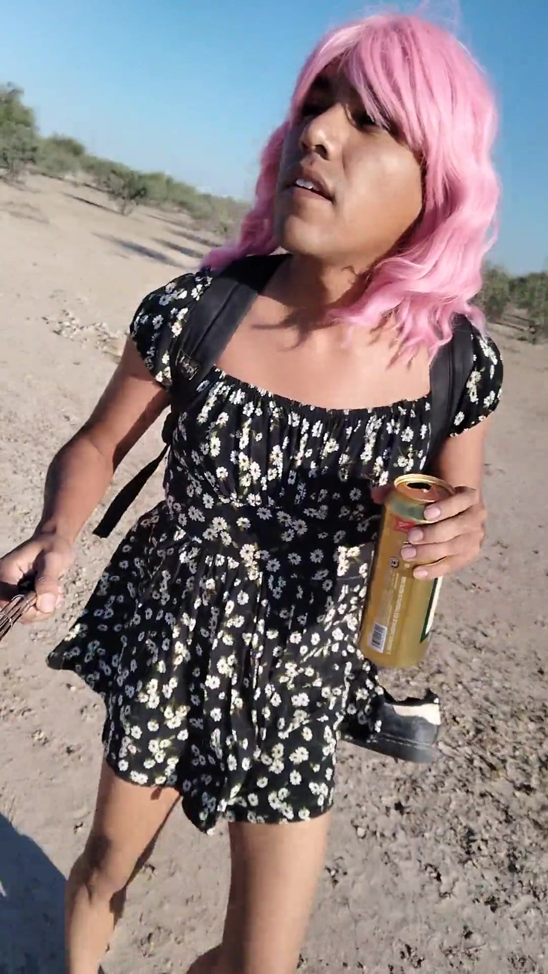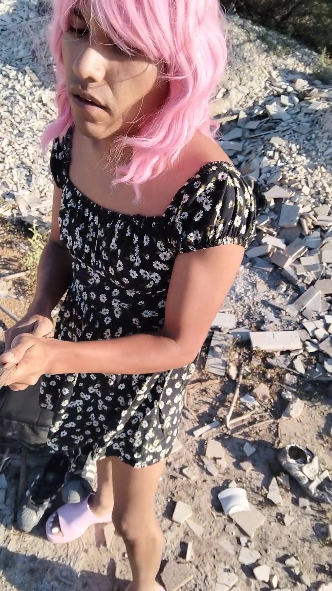 transgender princess hermosa con minivestido camina en publico con sandalias muy caliente