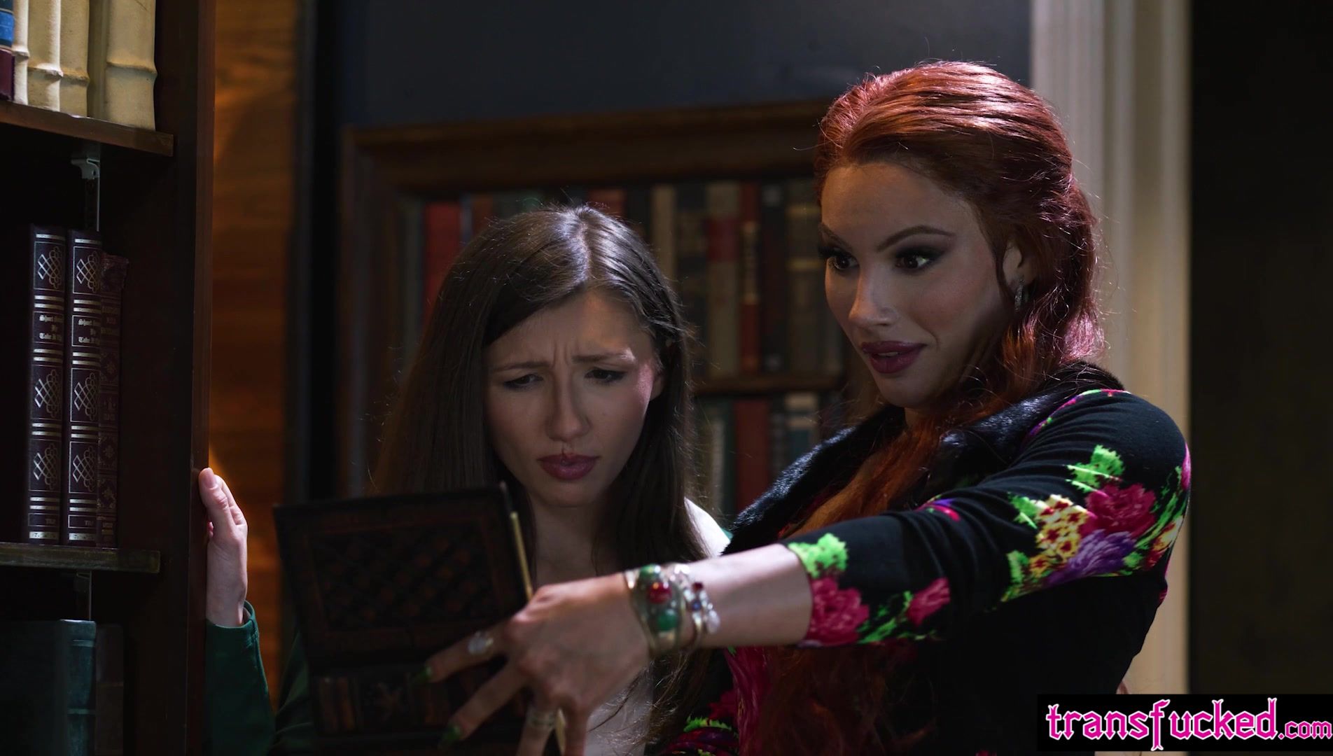 Tranny Ariel Demure fucked friend Maya Woulfe in public library and hot babe enjoyed her huge cock while sucking it and taking deep into her tight pussy Sexy babe seduced shemale and gave her a perfect blowjob After amazing cock sucking tranny banged her hot friend