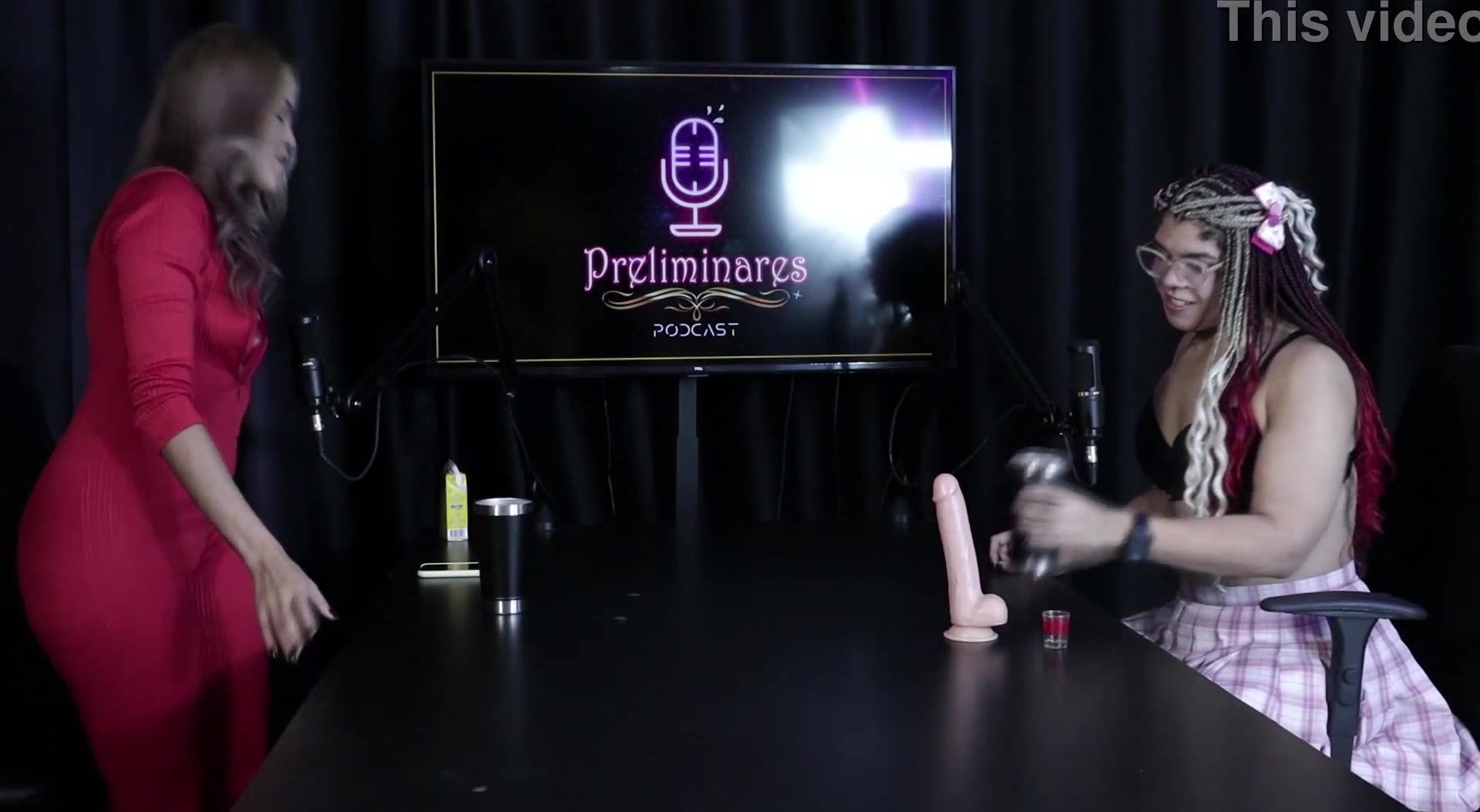 Taking off her clothes, flashing her bra-stuffers and her boner after displaying h...