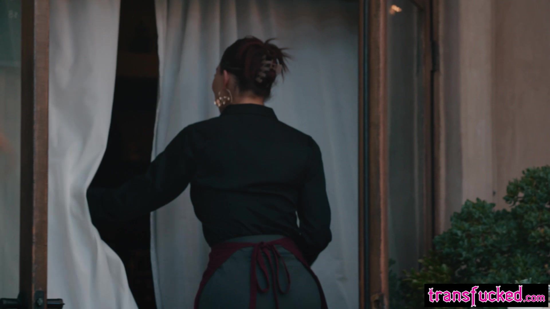 Calm day at restaurant turned into hardcore sex with old shemale friend so big tits teen enjoyed rough sex Big tits teen finally talked with her old friend After short talk teen gave a perfect blowjob and enjoyed hardcore pussy fucking