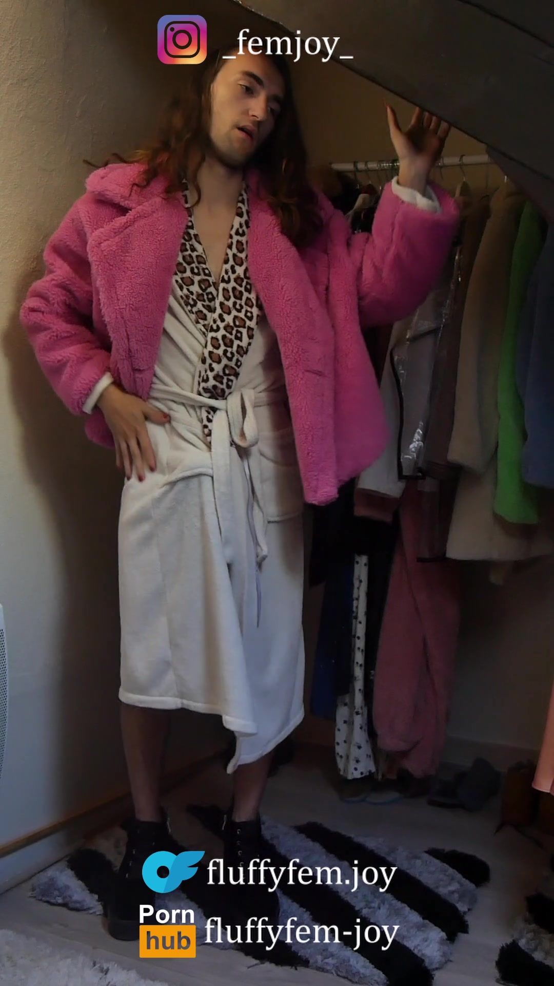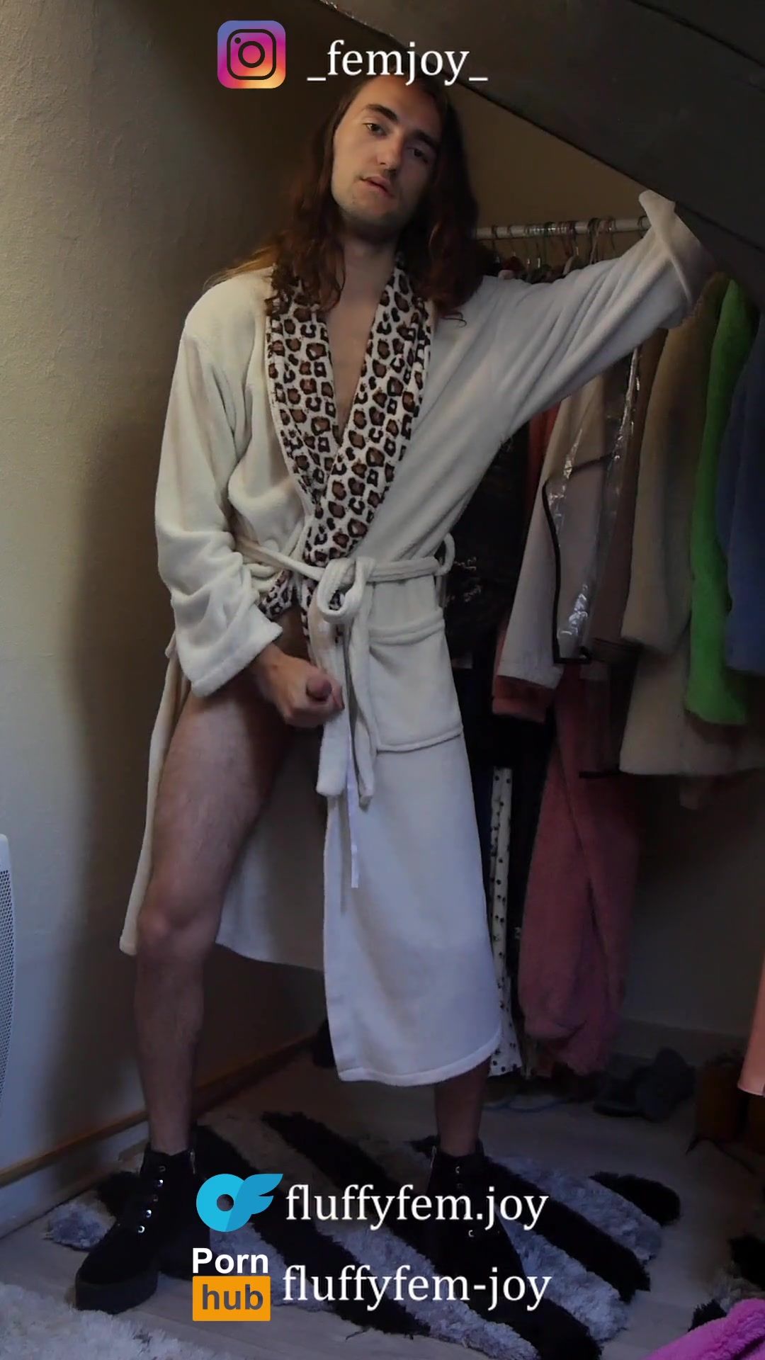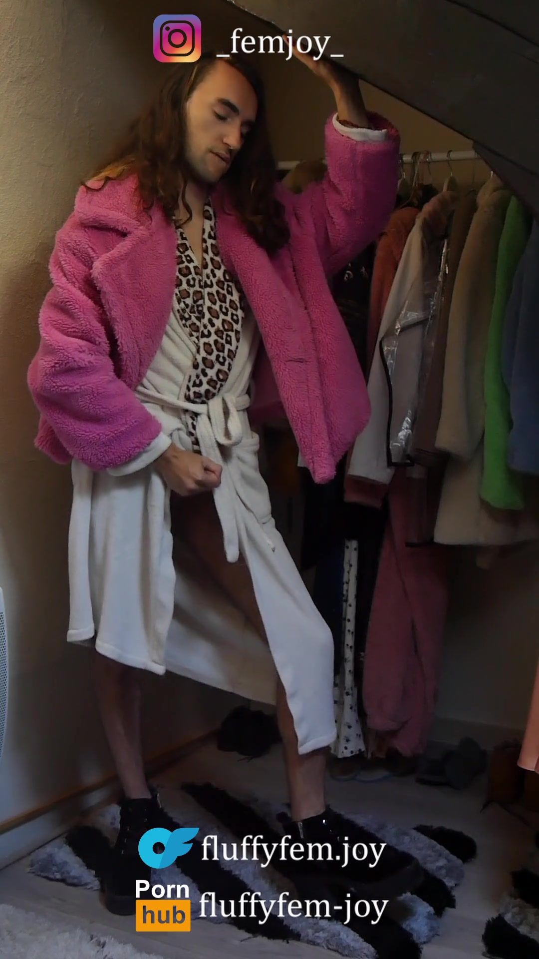 Ladyboy in high-heeled slippers and robe