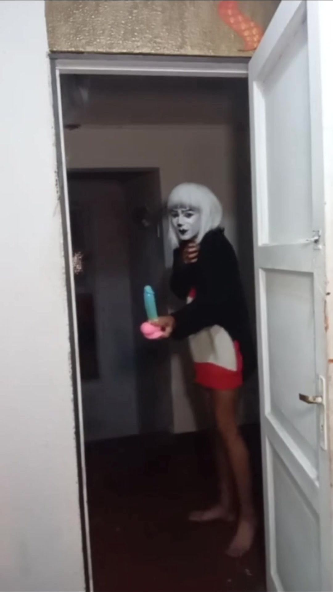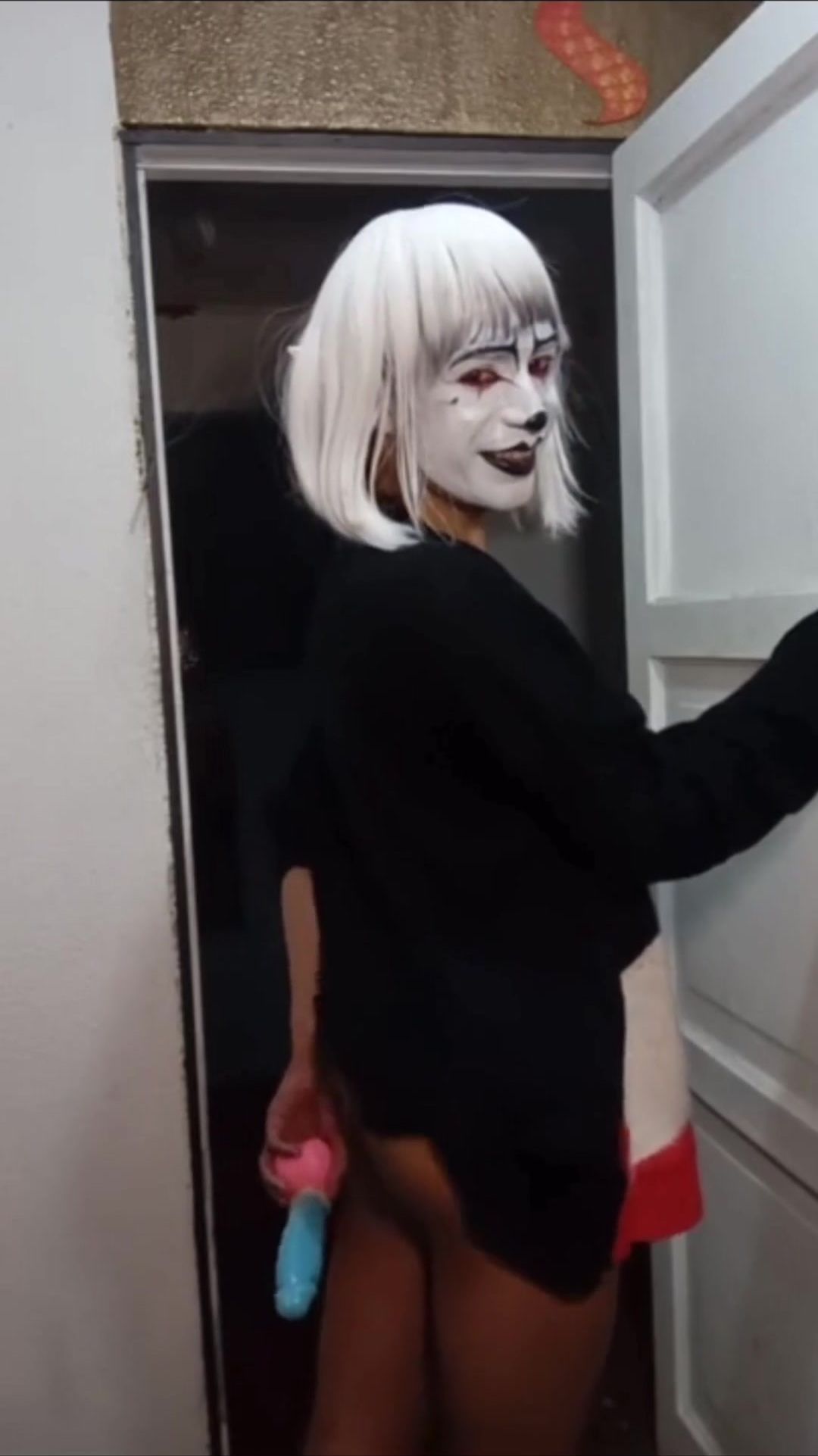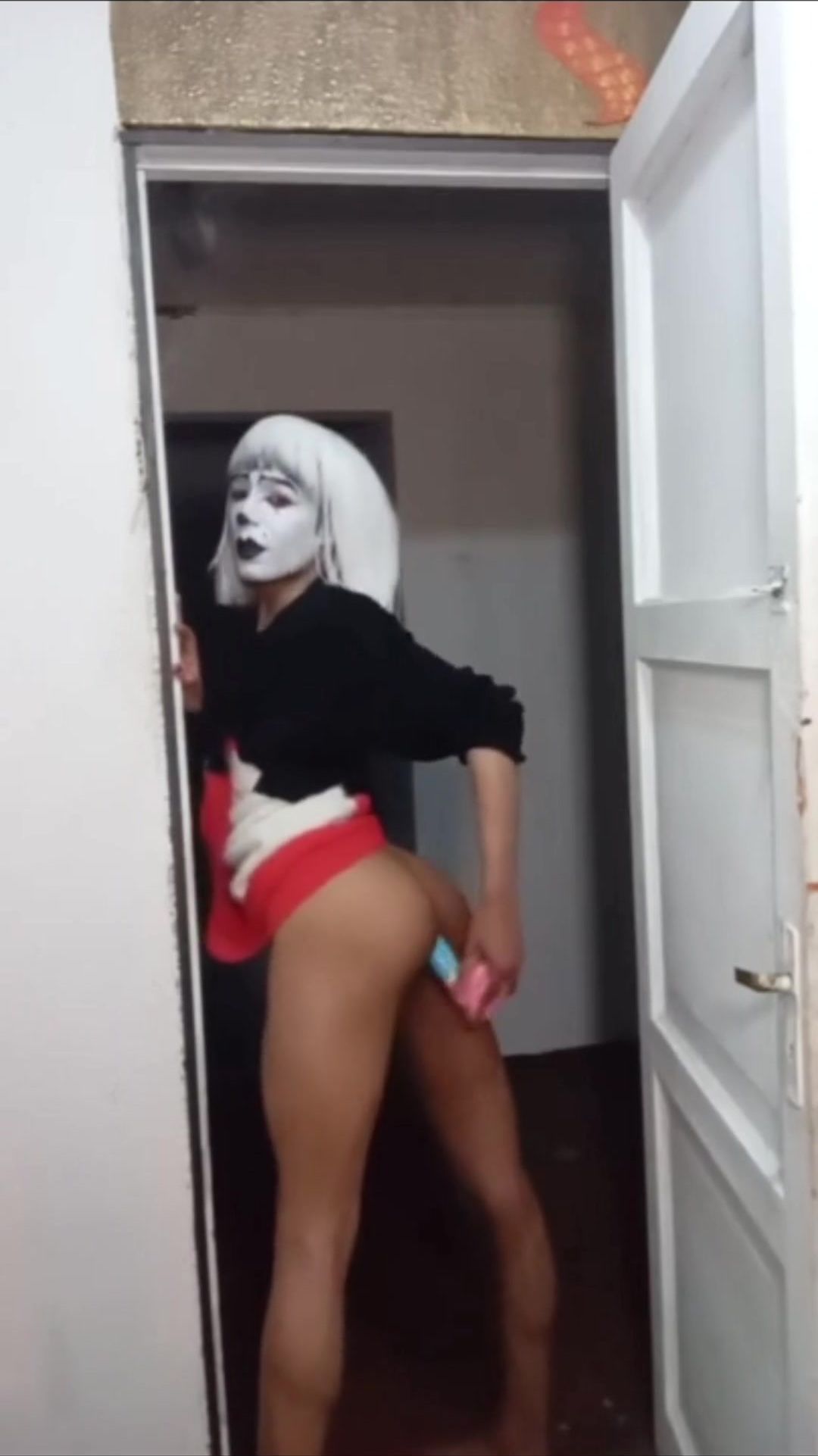lovely elf Femboy frolicking with her Smallish rump with faux-cock