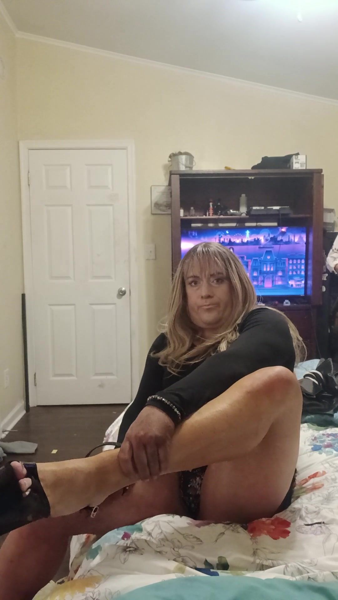 Crossdressing in stripper high-heeled shoes and lbd