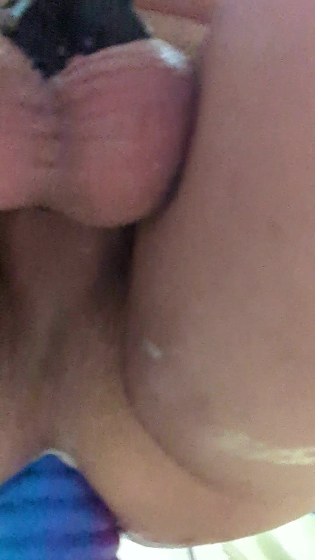 Fatty ladyboy plays with faux-cock in douche