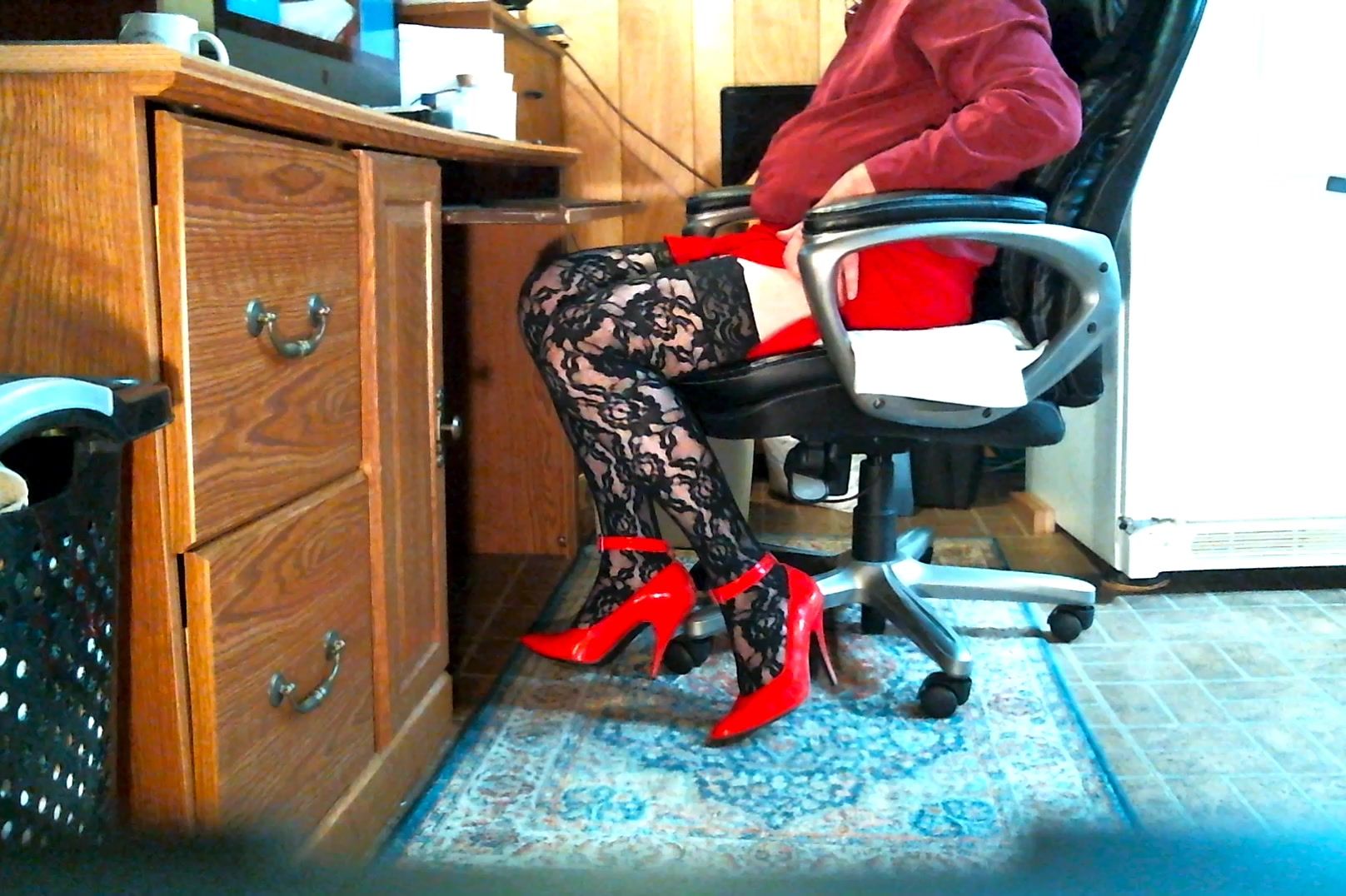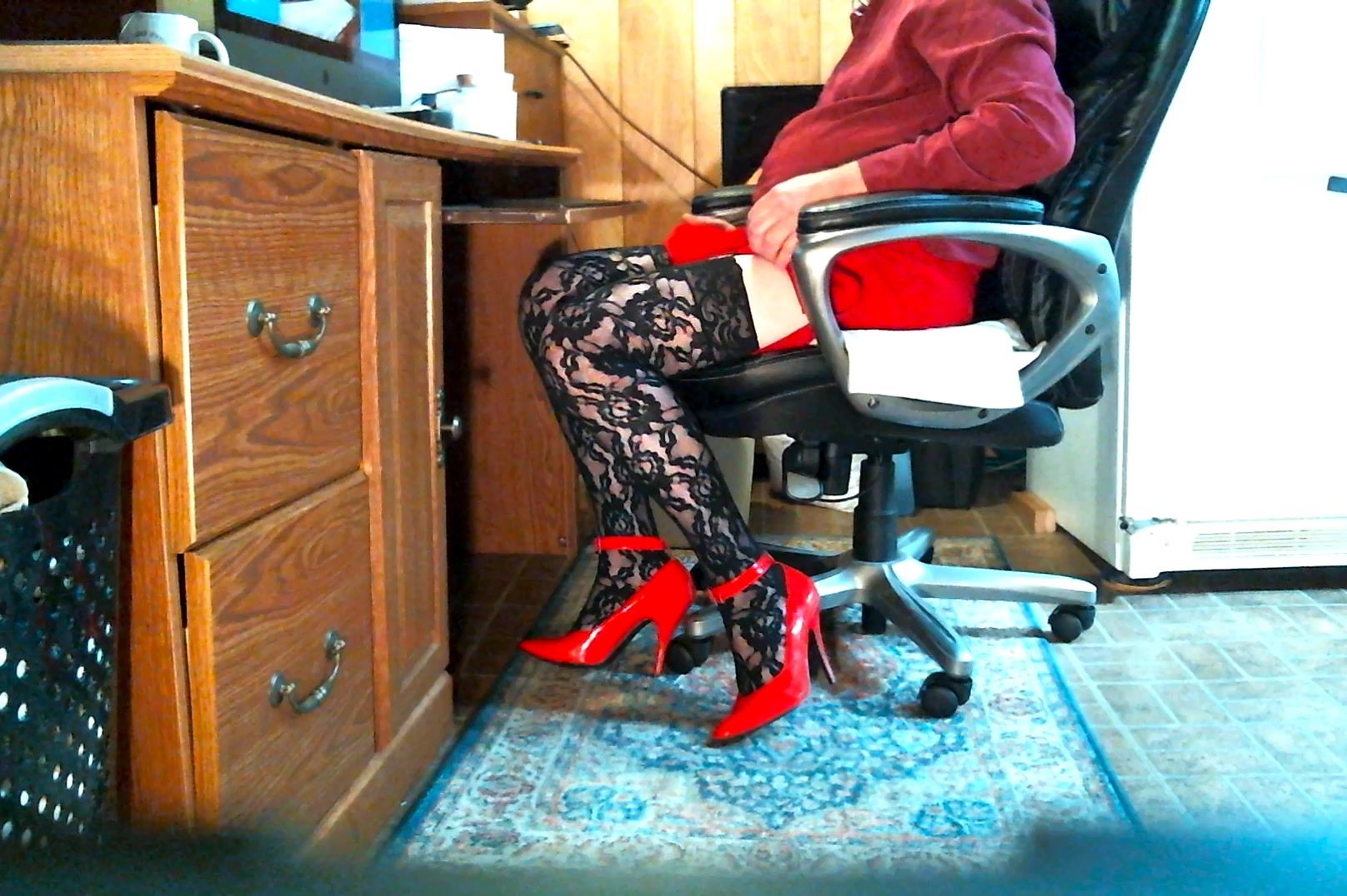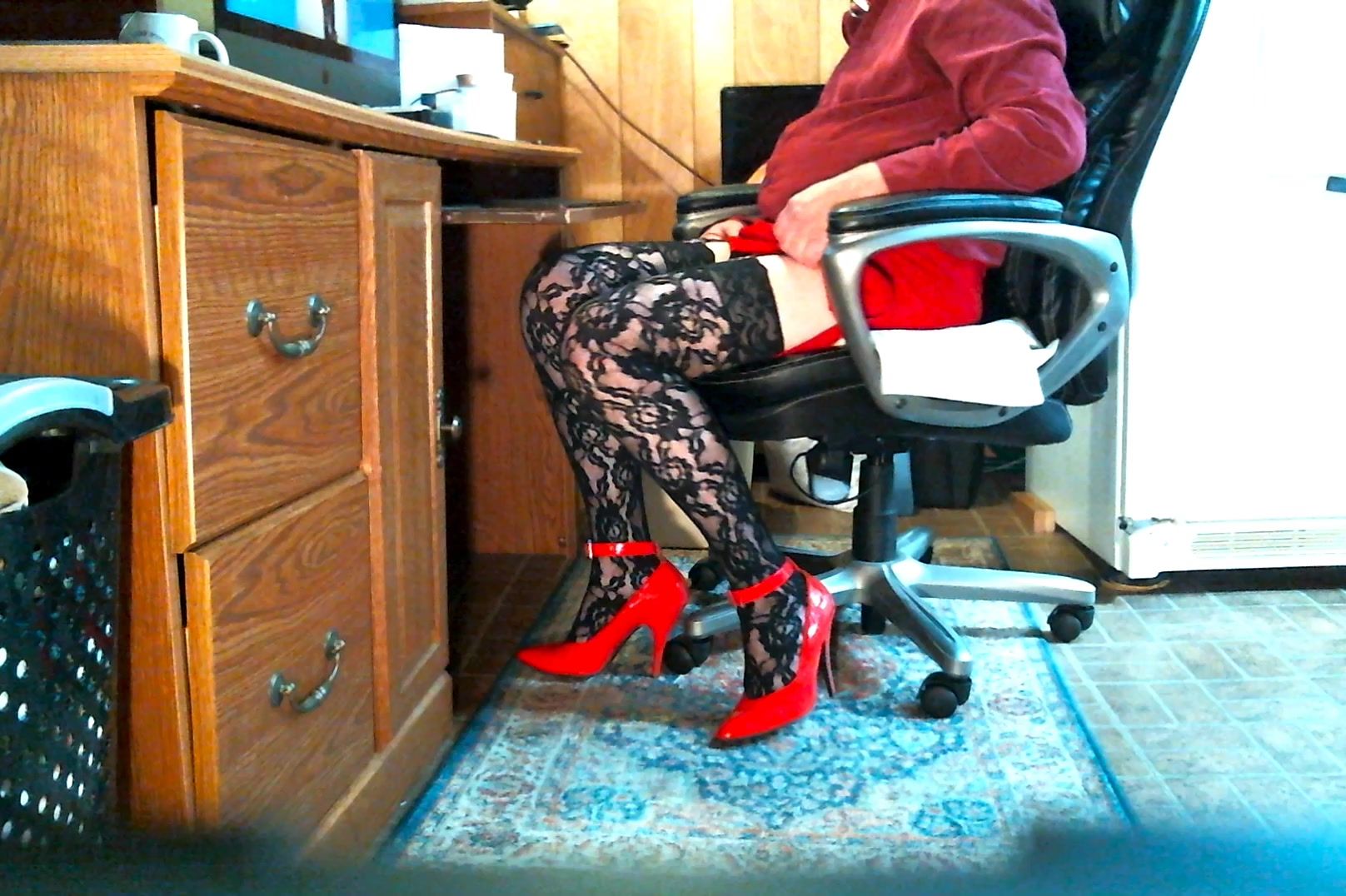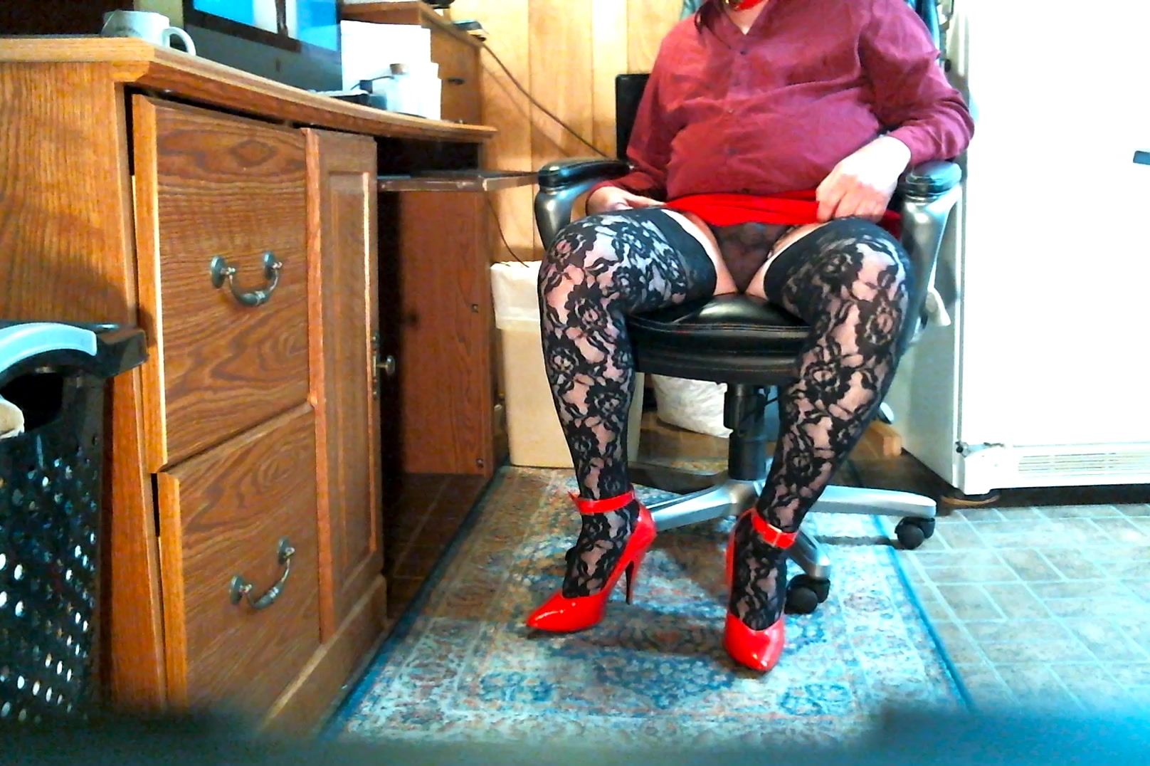 Sandy showing her black stockings