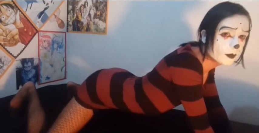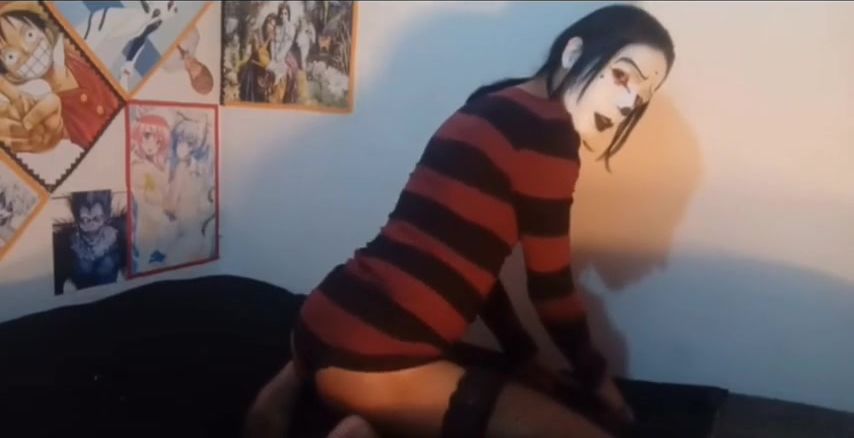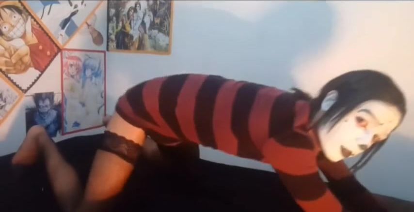 Goth Tgirl in Slender Sundress frigging her small Bootie
