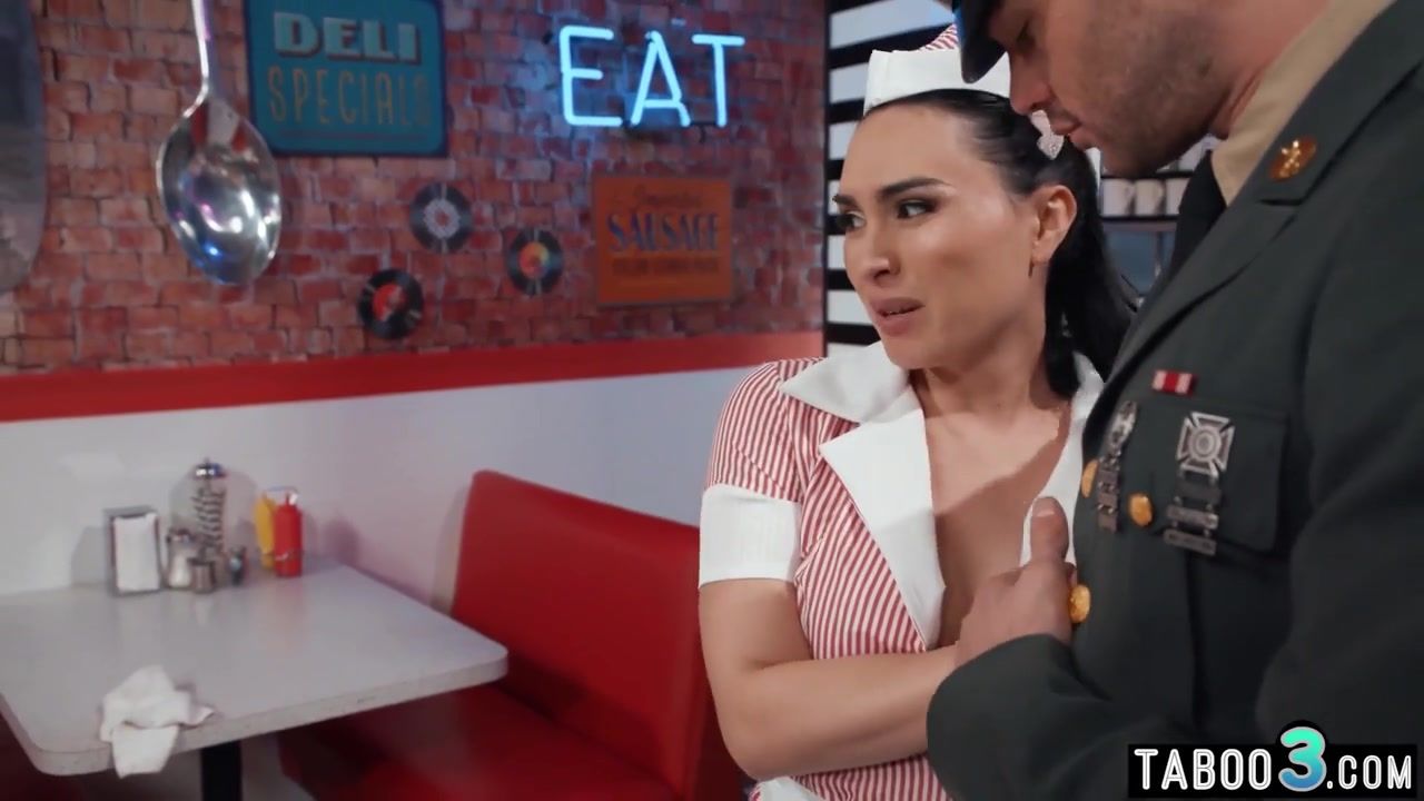 Horny soldier visiting his asian tranny girlfriend Ember Fiera with big boobs at a restaurant after hours The TS slut offers to make him dinner But Cliff cheekily admits that he is hungry for something else at the moment