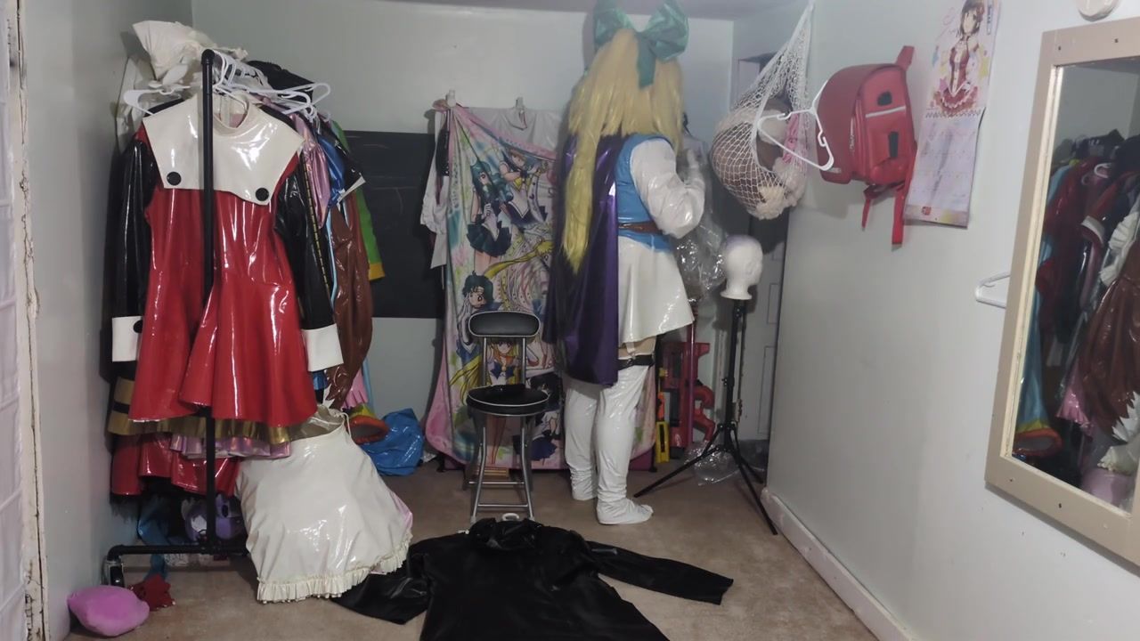 vinyl Cat Priestess Miko Sissy Costume Play does Breathplay and Vib