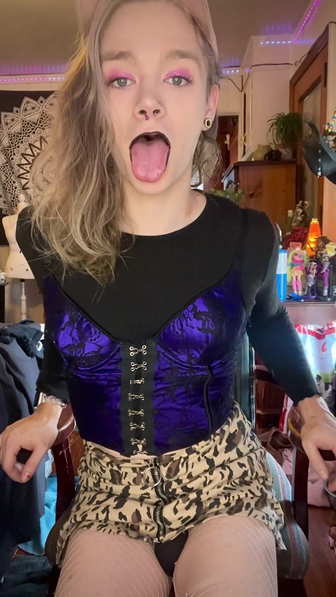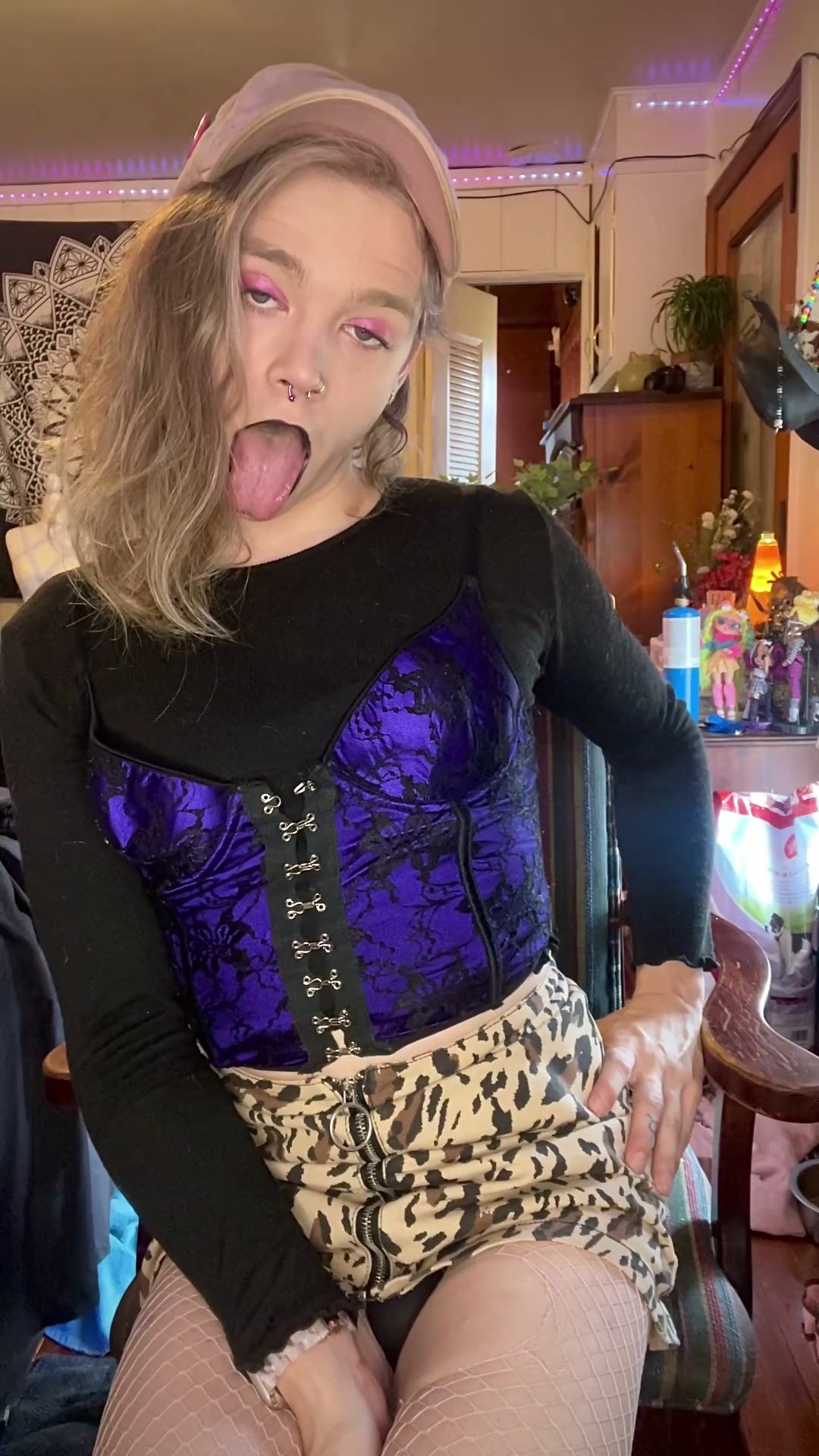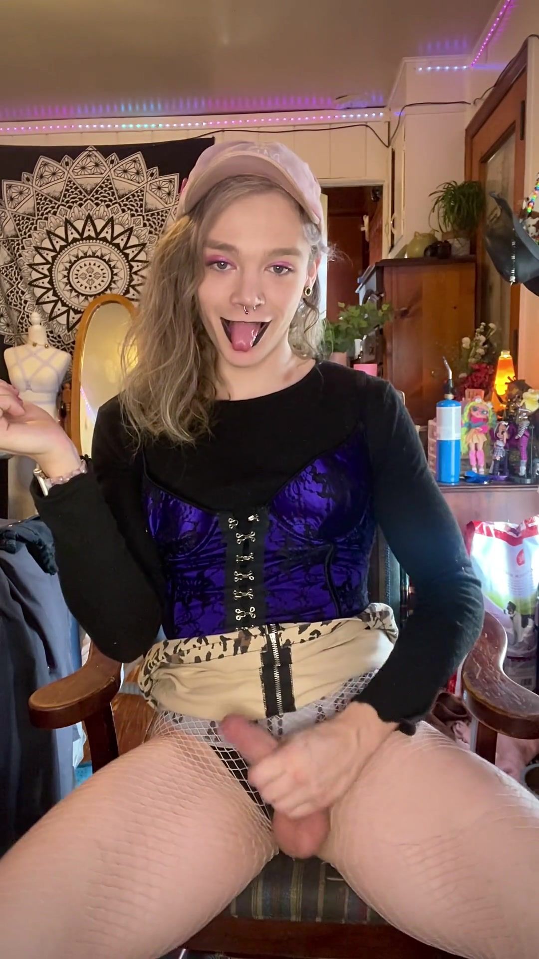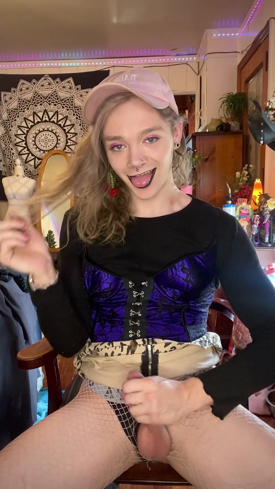 Alt Trans Fem in Black Lip liner Drains Off, Fellates a Realistic Faux-cock and Licks Jizm Off it