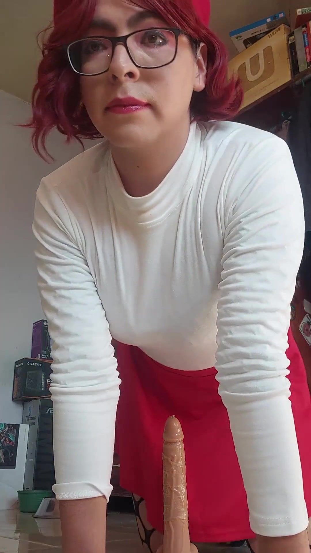 Sissy in virginity and her 8" fake penis (vertical) three/three