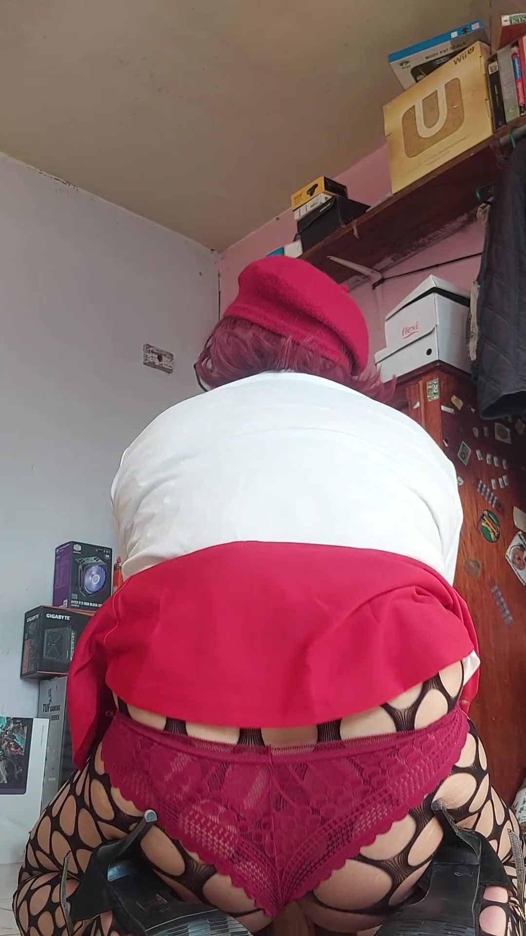 Sissy in v-card and her 8" fake penis (vertical) 1/trio
