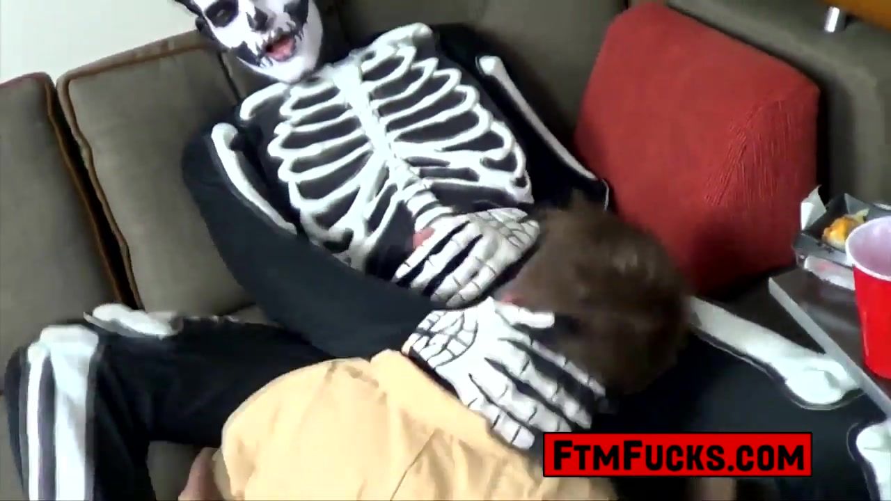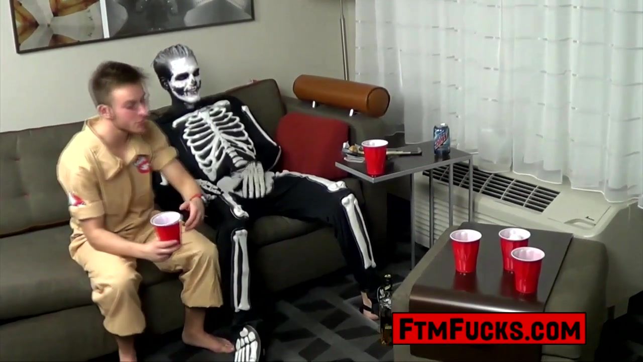 Trick or Treat!? Ive got a bone to pick with you! Gaybuster FTM jock Luke Hudson fucked by Zack Grayson who is dressed in a scary skeleton costume!