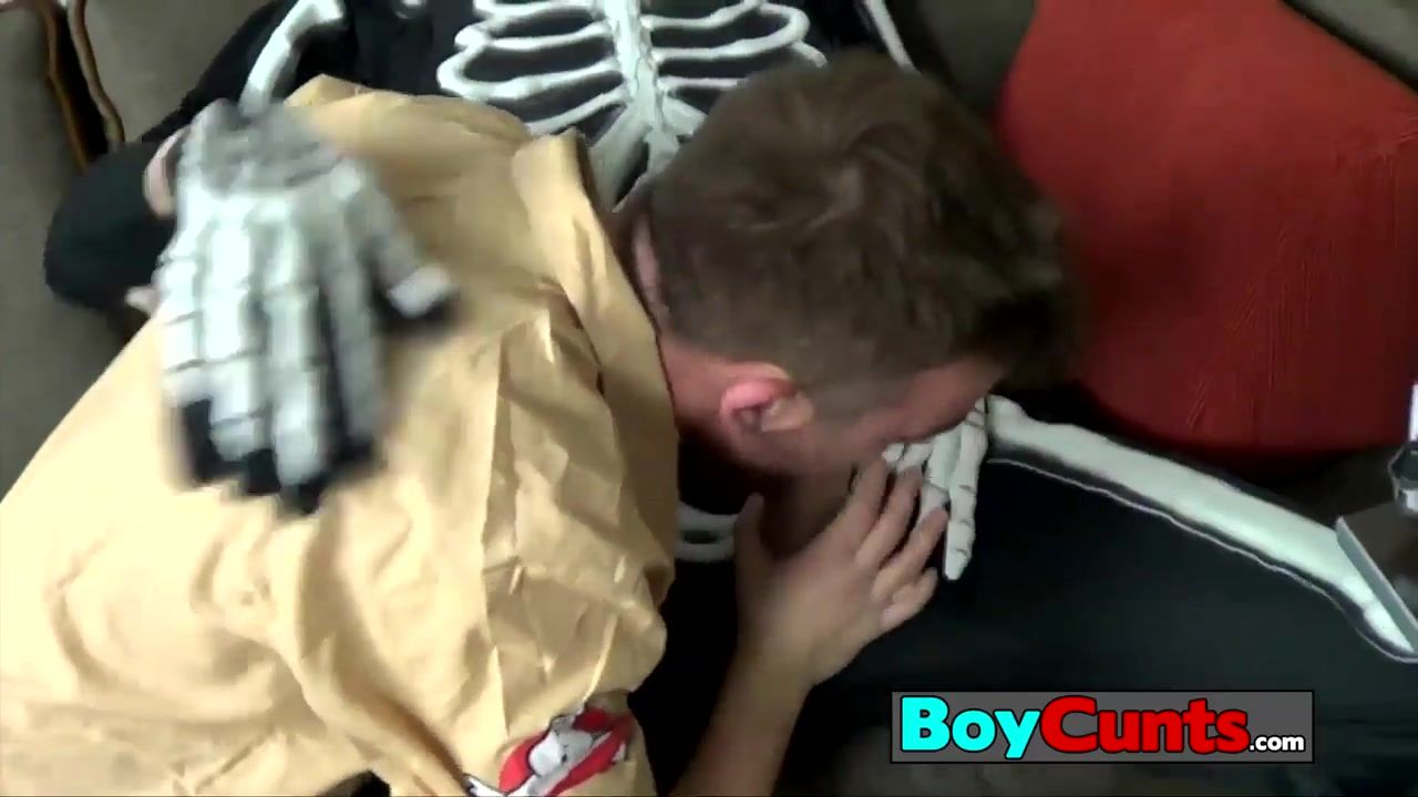 Turns out his big cock is way too big for his skeleton costume Luke ripping Zacks costume and immediately filling his face with that long schlong Luke jumps right on top of that rock hard cock Zack finding just the right spot deep inside Luke