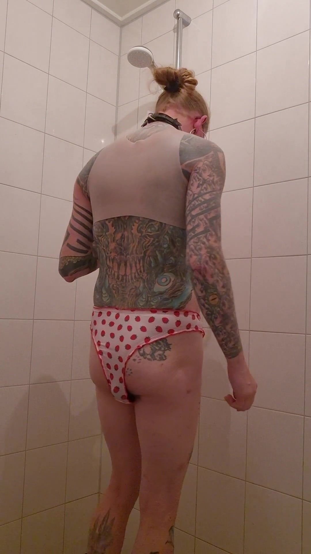 Sissy mega-slut urinates and uses fuck stick's under the bathroom