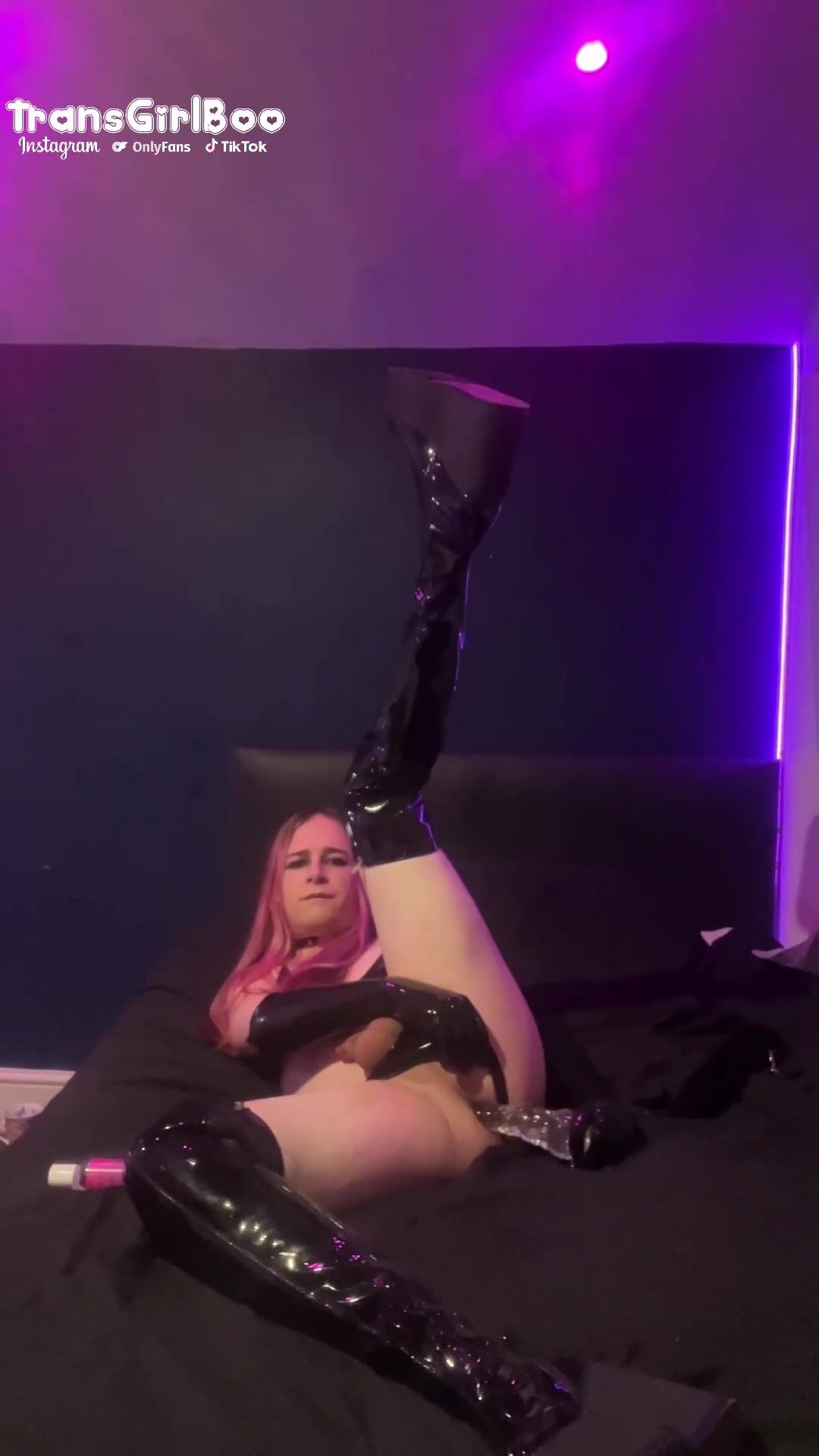 Emo Trans Nymph Dressed in Spandex Mittens and vinyl Attire Rails Tentacle And Lubricates Herself Up