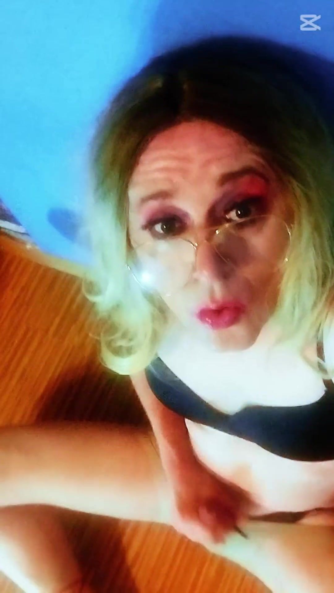 Super-cute crossdresser with succulent eyes in stockings and high stilettos is frolicking with his chisel
