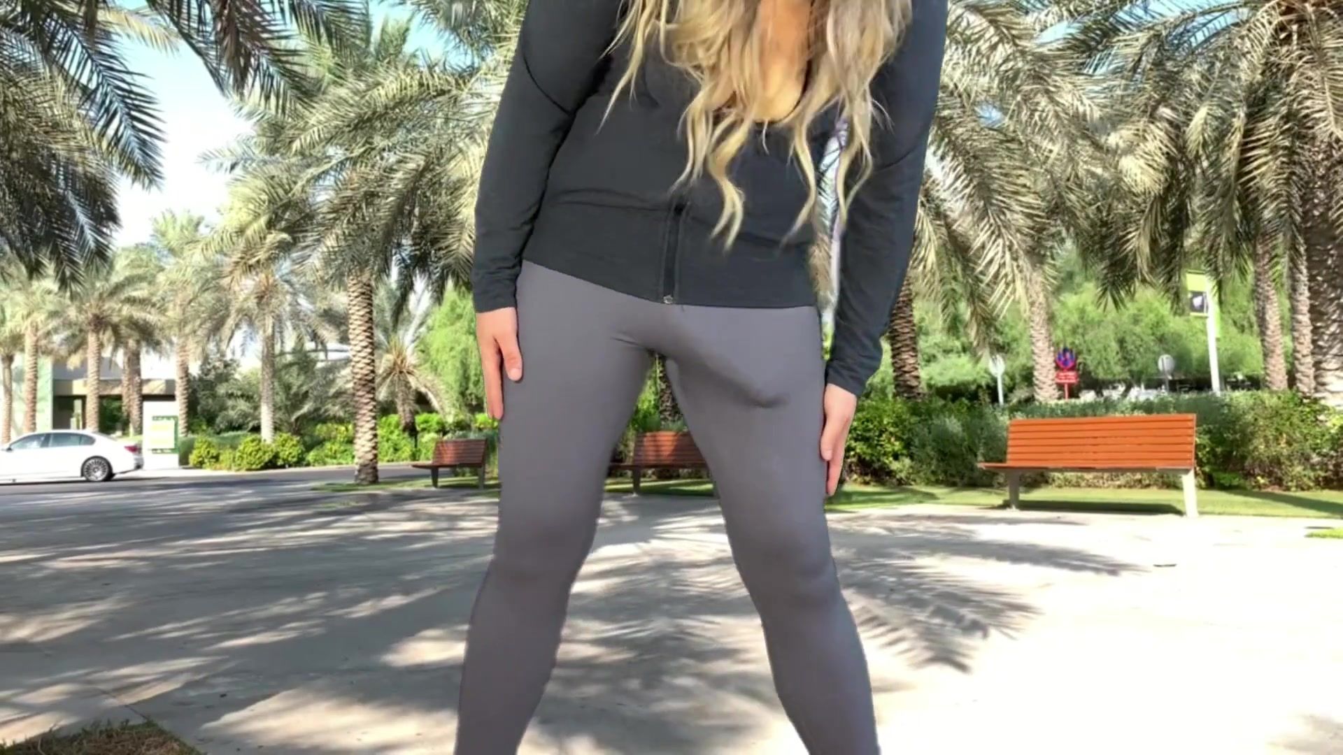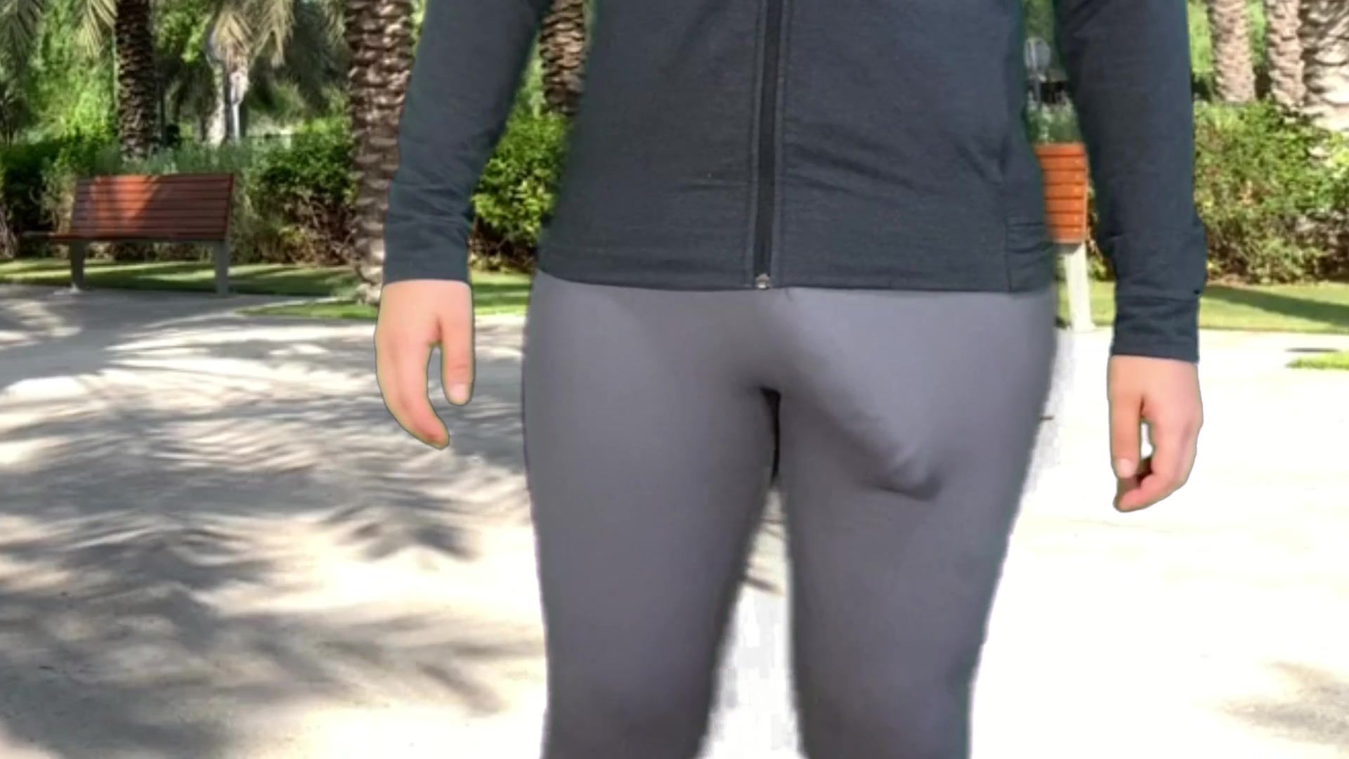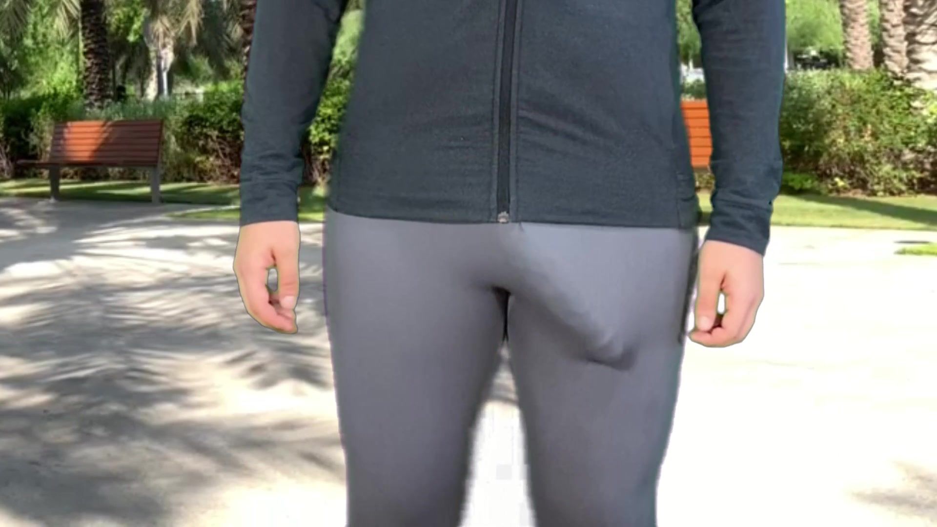 Monster pipe t-girl public in cock-squeezing trousers