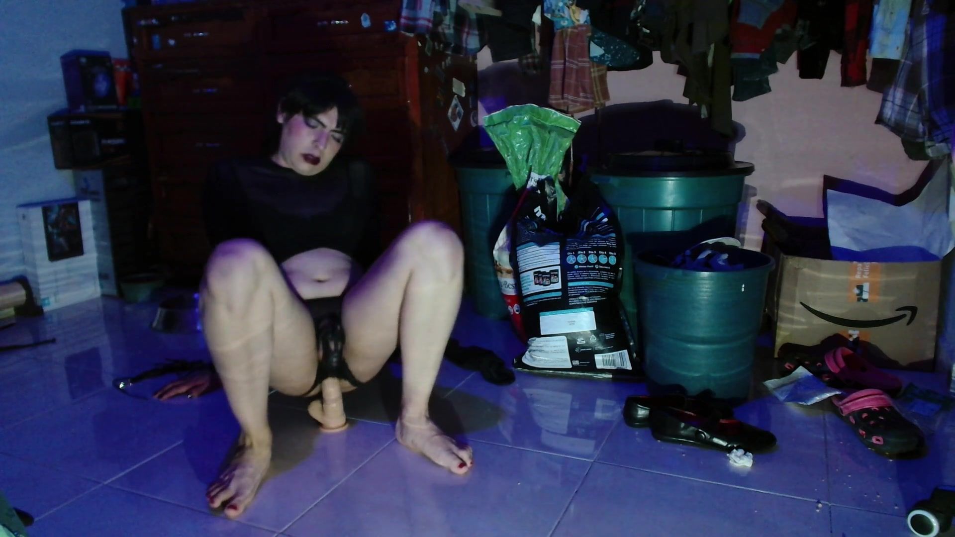 Sissy Crimson and Dark-Hued she plays backside smash with her fucktoys trio
