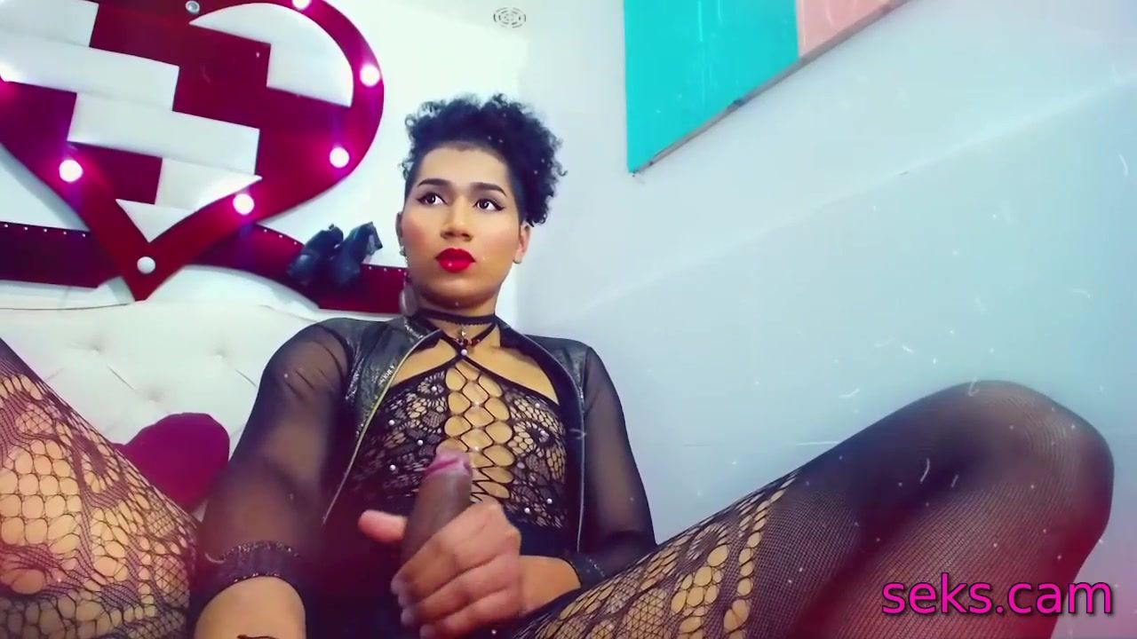 Insatiable she-male milking her immense jizz-shotgun on web cam
