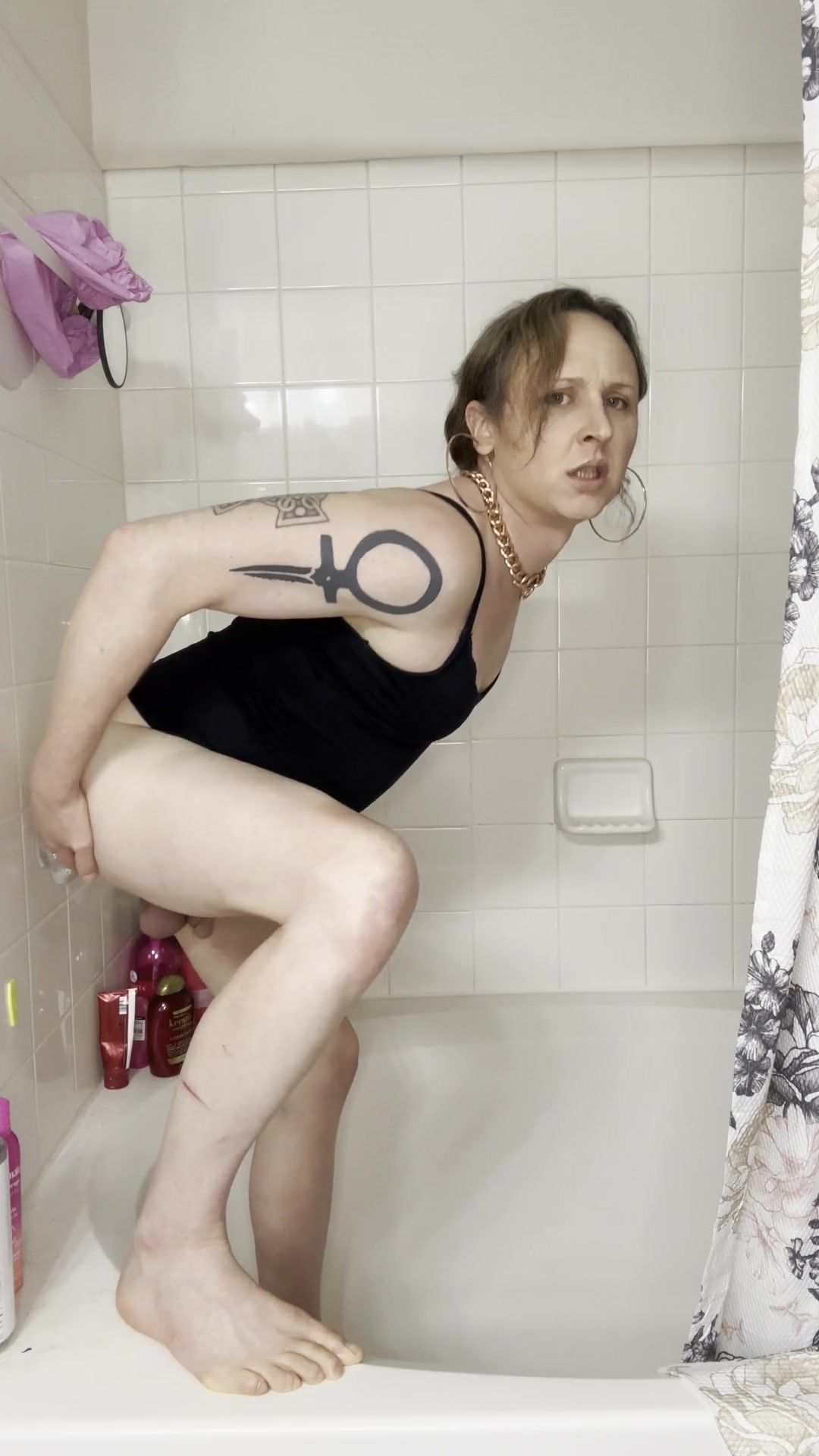 Steamy Trans Damsel Banging a Fake penis in the Douche!