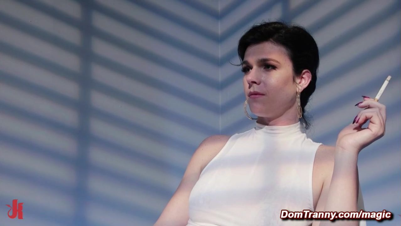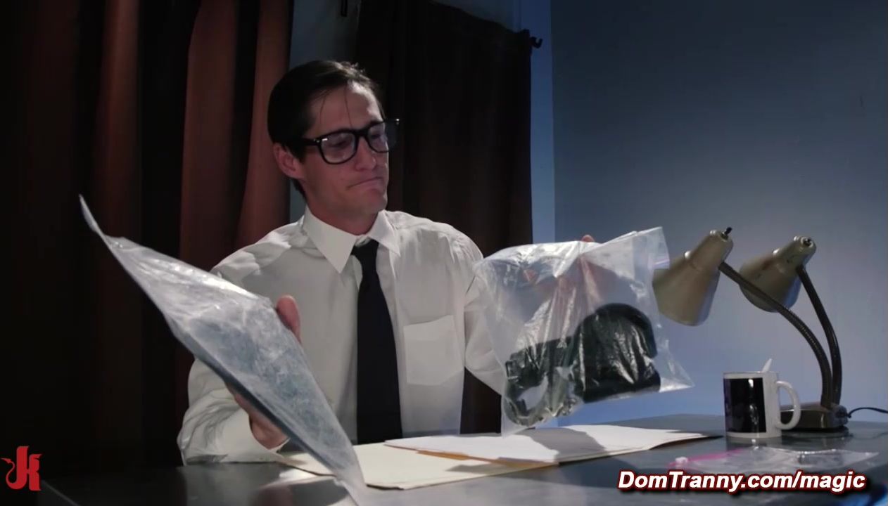 Dressed in white for an interrogation hot brunette shemale Kendall Penny subverts detective Tony Orlando with explicit BDSM dominance and anal fucks his gaping ass in doggy style position