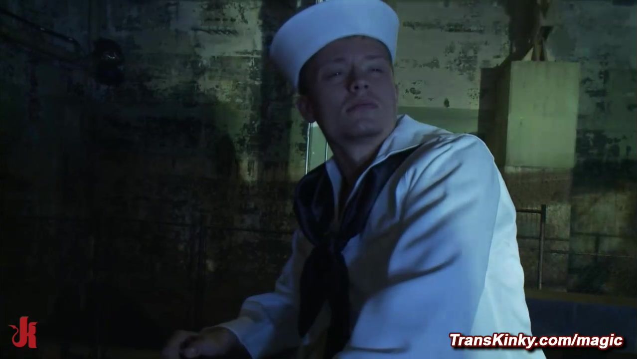 Seductive big tits shemale siren Yasmin Lee catches in her net sailor Micah Andrews and in rope bondage fucks his deep throat and gaping ass with a big cock in various positions