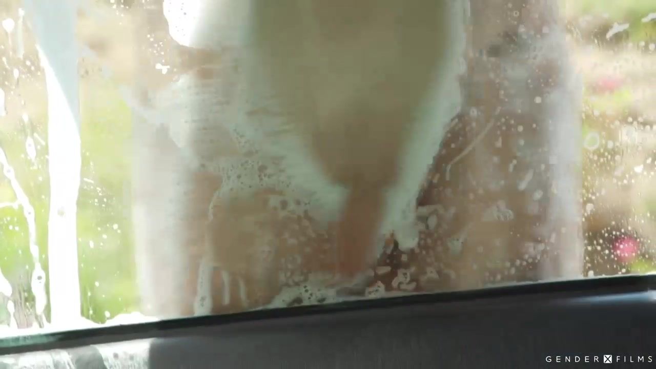 Carwash babes Gracie Jane and Jayne Calloway give their lucky customer a free extra service after washing their car.They start sucking their hard big dick passionately and let them fuck their wet ass so hard.Go to Tgirlztube.com for discount.