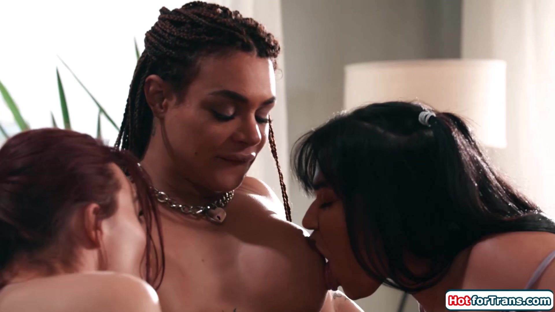 Petite latina Summer Col jerks off her big tits shemale gfs Eva Maxim and Emma Rose.The redhead tgirl likes to get sucked.The brunette babe rides her trans friend while being facefucked by the other tranny.Transsexual Emma anal barebacks them both