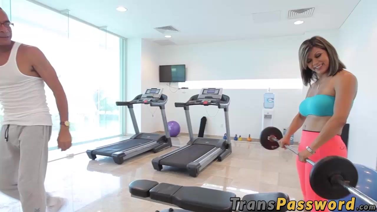 Hot shemale Naomi Chi gets fucked after a workout in a gym
