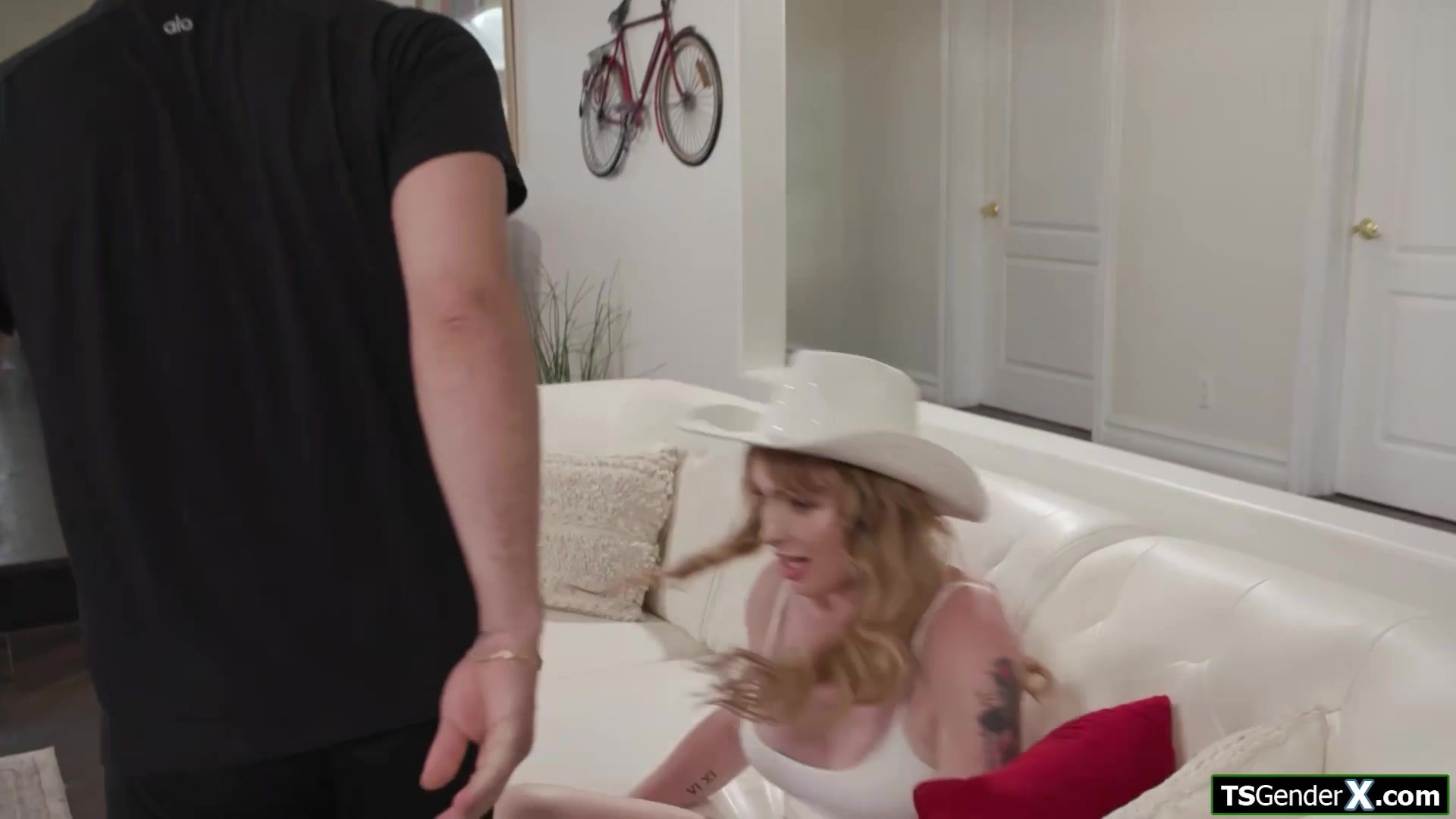 Guy stops to pick up hitchhiking trans Blake Lovely and takes her home.The busty shemale deepthroat and is rimmed.The big tits blonde tgirl facefucks him and gives a footjob.On her back the tattooed tranny is anal barebacked by his big cock