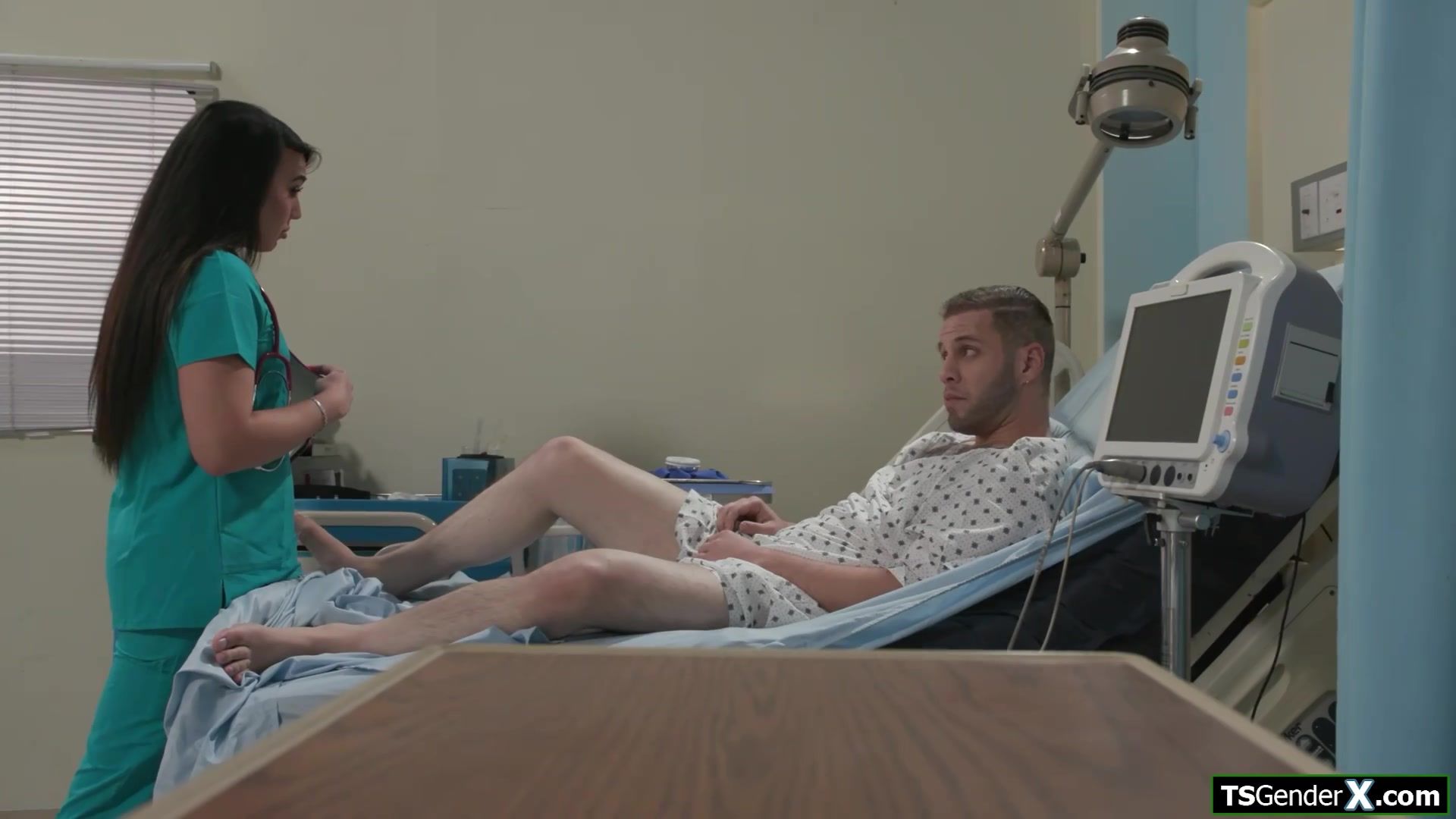 Asian tgirl nurse Kasey Kei gives in to her patients flirtations and lets him suck her perky tits.The shemale deepthroats and kisses him while giving a double handjob.The guy ass licks the trans and bareback anal thrusts his dick up her butt